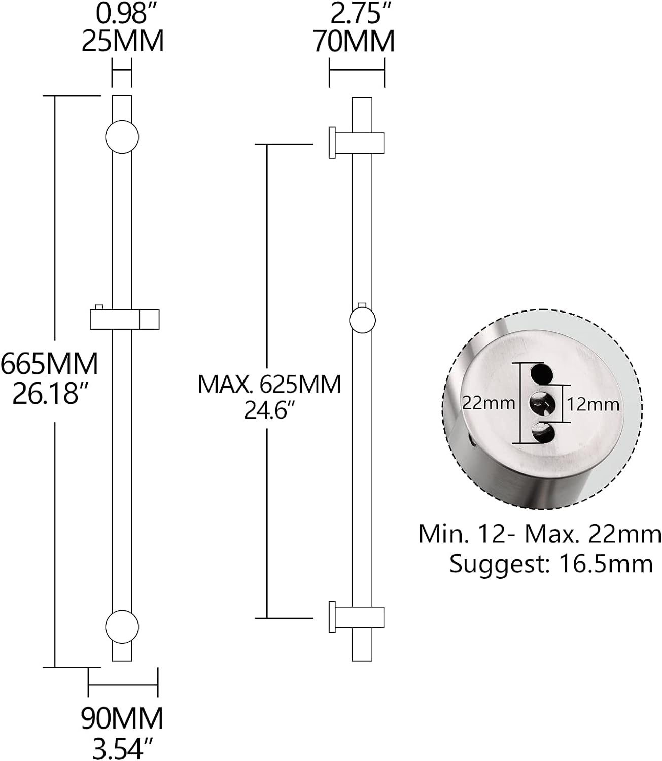 - Universal Brausestange und Bracket: 26 "Brausestange mit Brausehalter, Universalöffnungsgrösse ist kompatibel mit 95% Duschkopf