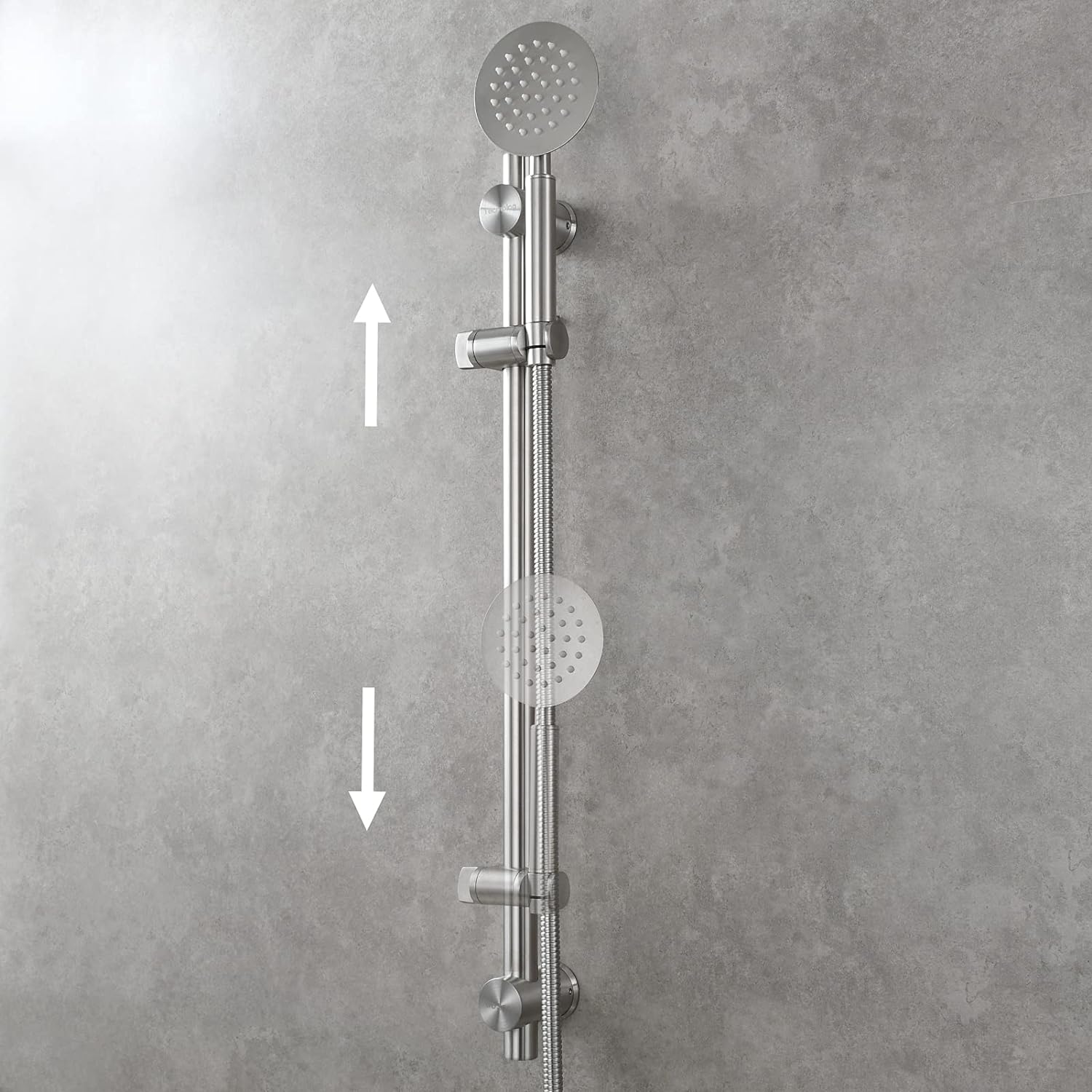 - SUS 304 Edelstahl Material: Die Duschstange ist aus Edelstahl gefertigt, um Kratzern und Korrosion und Rost zu widerstehen, Qualität und Langlebigkeit zu gewährleisten