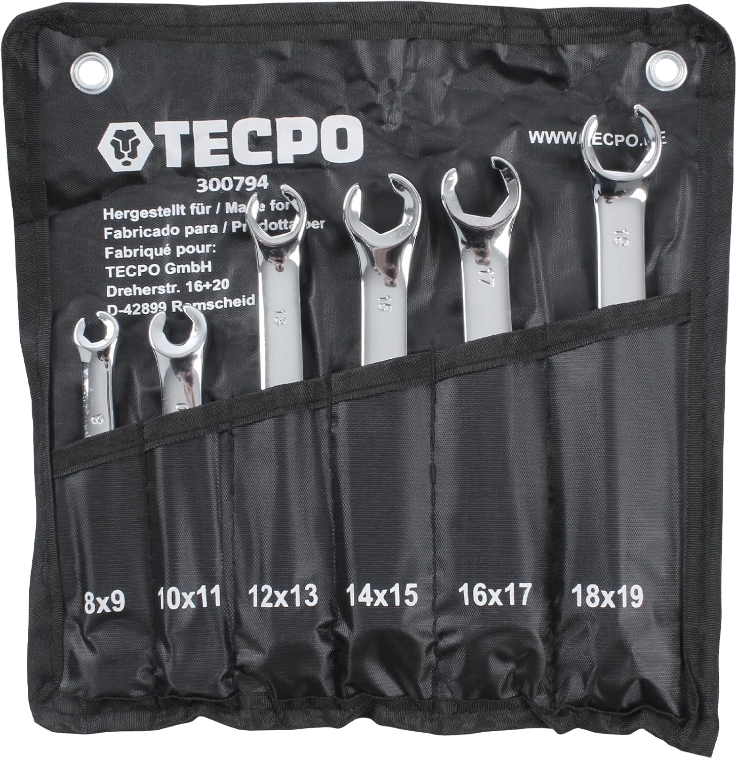 - offener Doppel-Ringschlüssel SW 8 x 9 mm, 10 x 11 mm, 12 x 13 mm, 14 x 15 mm, 16 x 17 mm, 18 x 19 mm
