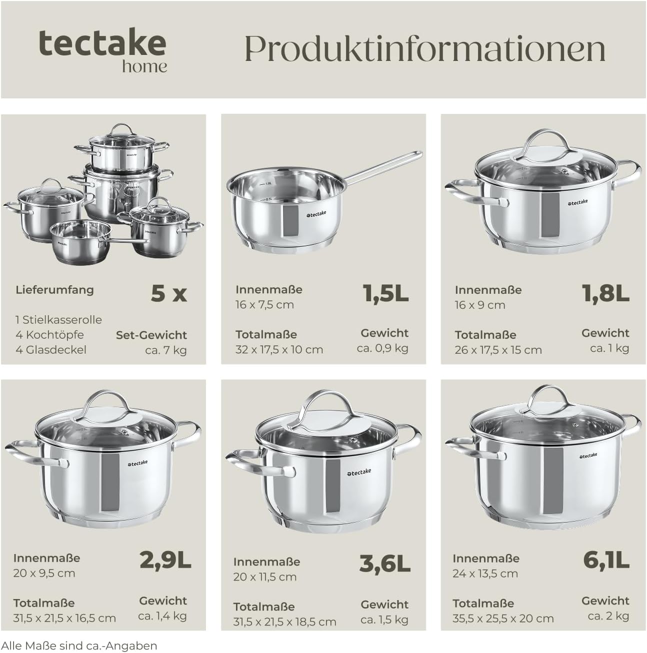 - VIELSEITIGES 9-TEILIGES TOPFSET EDELSTAHL : Unser umfassendes Kitchen Set ist das Wohnung Must Have für Dich. Egal ob als Geschenk zum Einzug, die erste eigene Wohnung oder zum Camping: Töpfe inklusive Deckel sowie eine Stielkasserolle. Das