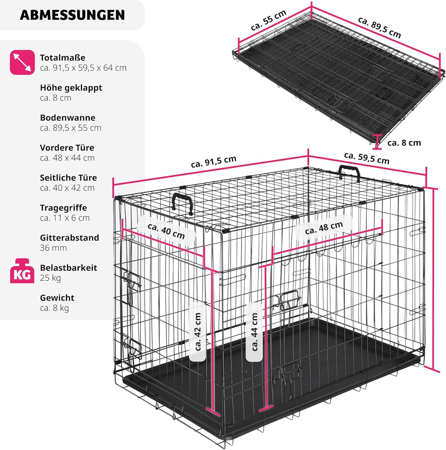 - LEICHTE REINIGUNG DANK HERAUSNEHMBARER BODENWANNE: Die herausnehmbare Bodenwanne ermöglicht Dir eine schnelle und unkomplizierte Reinigung des Käfigs. Einfach herausnehmen, säubern und wieder einsetzen – Dein Hund wird sich stets in einer sauberen