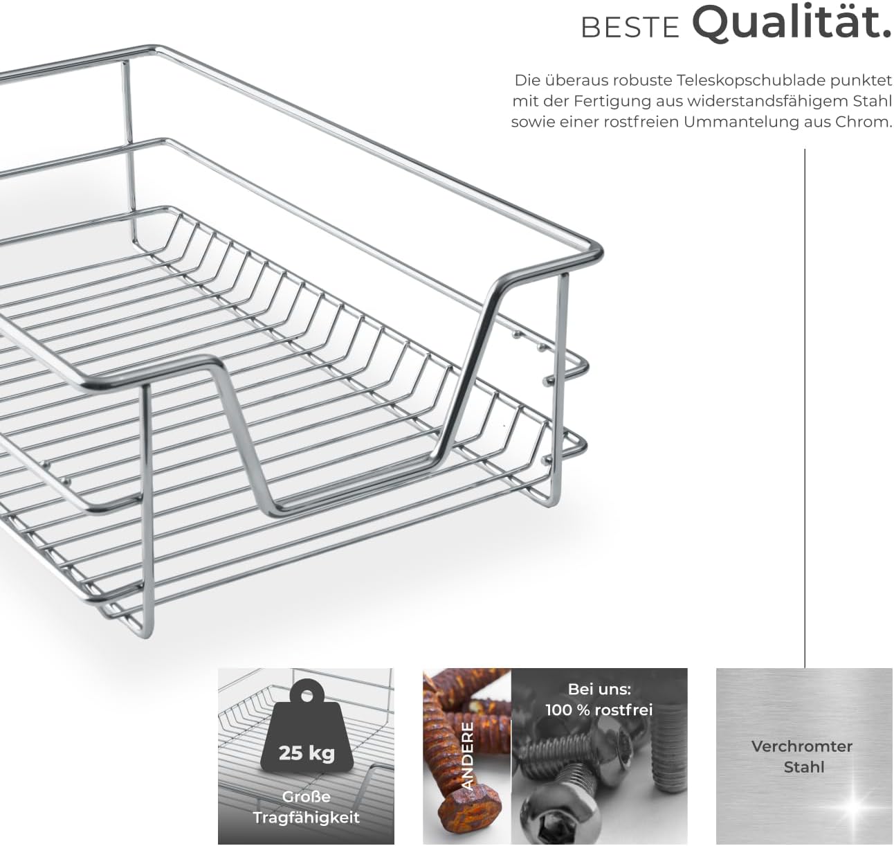 - MEHR ORDNUNG UND ÜBERSICHTLICHKEIT: Diese Teleskop Schublade bringt Struktur in Deine Schränke und darf sich mit Fug und Recht Küchenorganizer nennen. Mit Schubladen kannst Du Stauraum optimal nutzen und hast Deine Gegenstände immer griffbereit. Ob