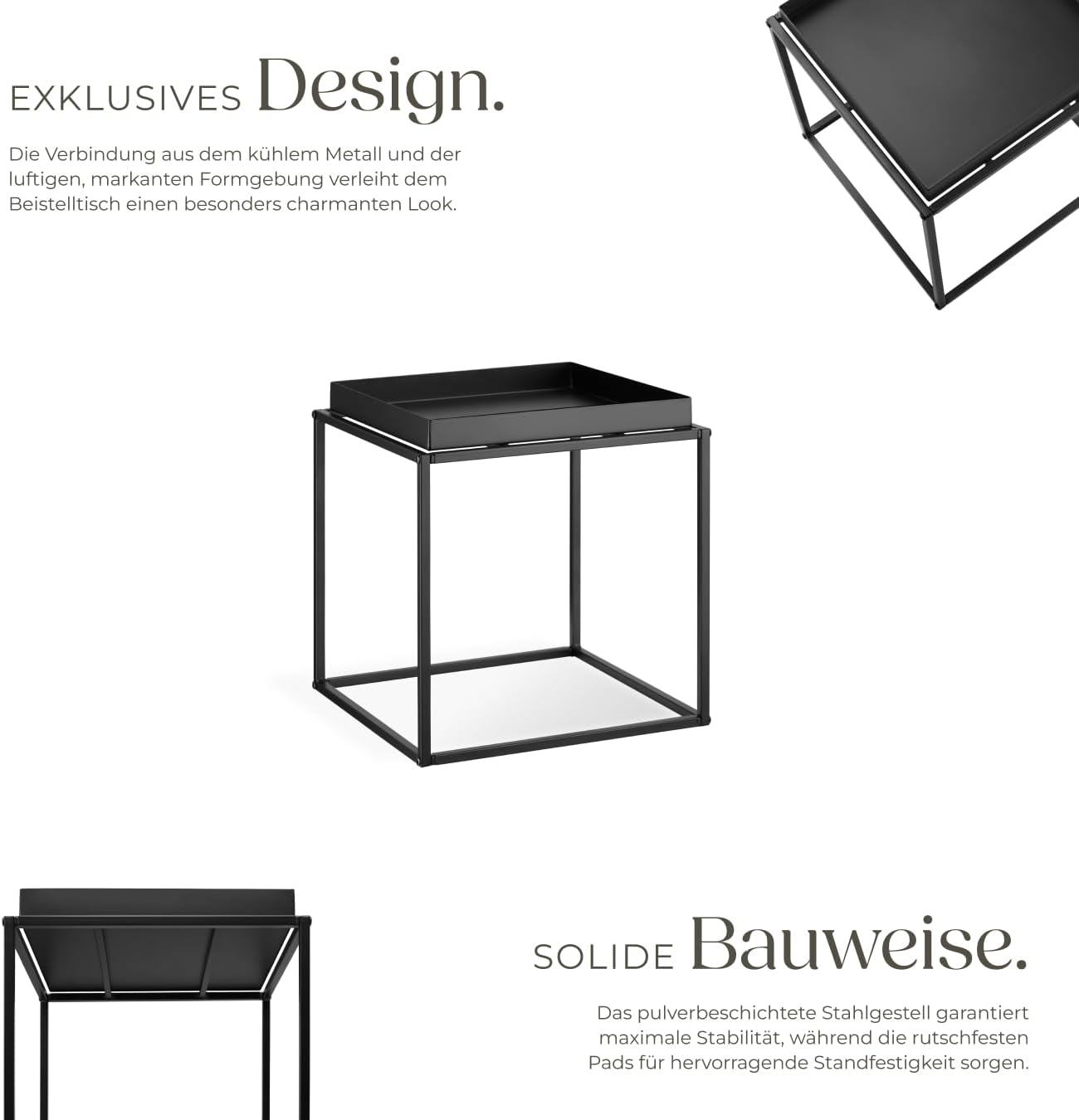 tectake 800910 Beistelltisch aus Metall, quadratisch, stapelbar, Ablagefläche mit hohem Rand, Tablet
