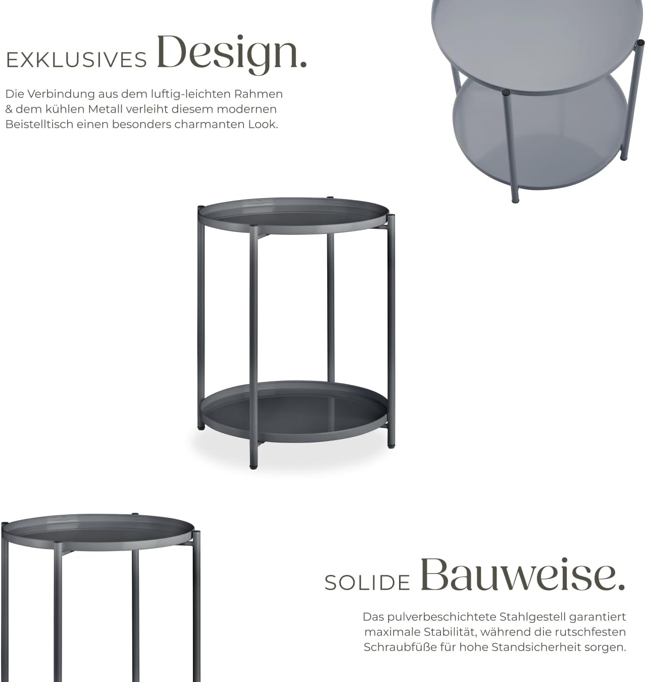 - PRODUKT-DETAILS: Totalmasse (LxBxH): ca. 45,5 x 45,5 x 53 cm // In-nenmasse Ablageflächen (ØxH): ca. 41 x 1,8 cm // Durchmesser Stahlge-stell: ca. 1,6 cm // Verstellbarkeit der Kunststofffüsse: ca. 1 cm // Belast-barkeit pro Ablagefläche: 30 kg //