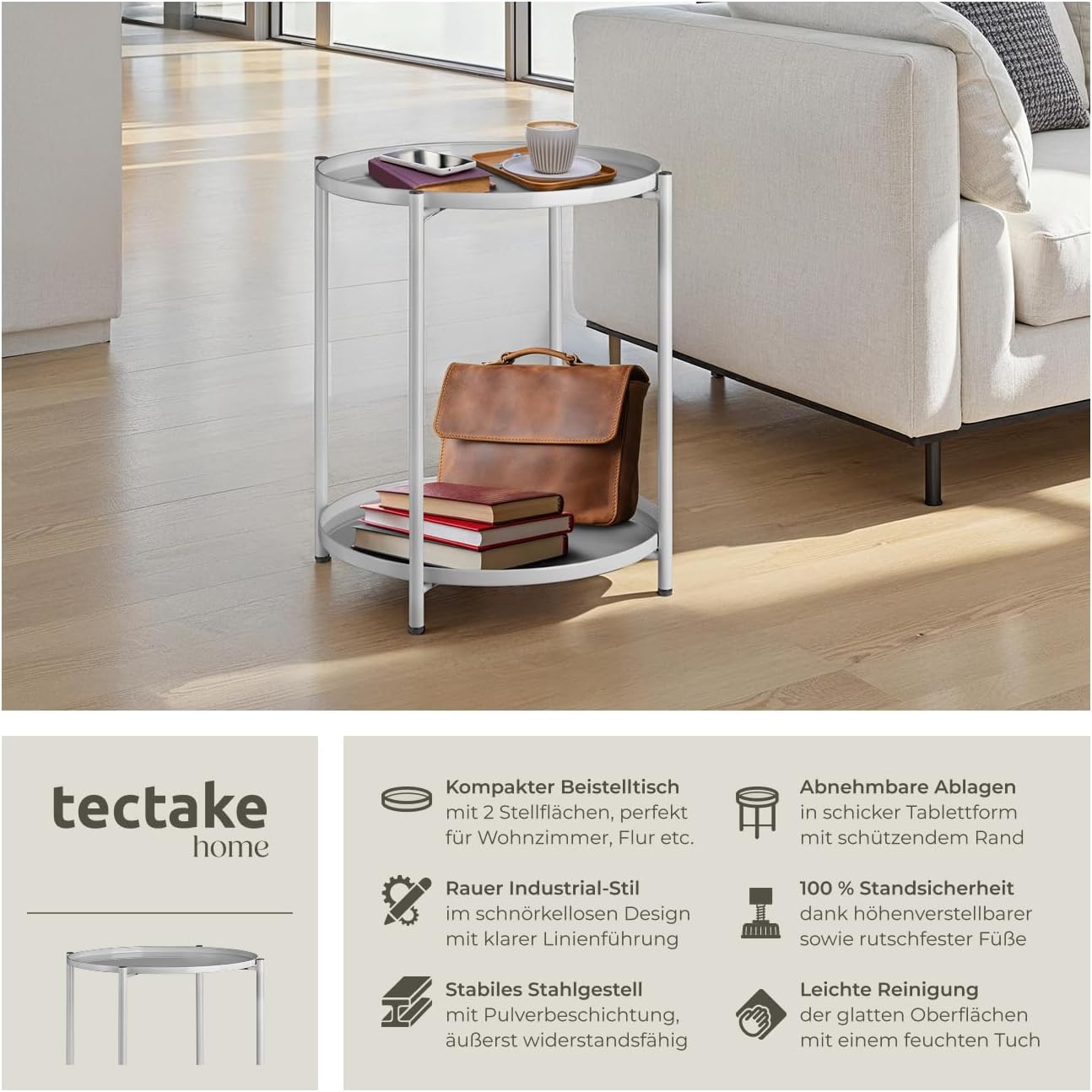 - FILIGRAN UND FUNKTIONAL: Der luftig-leichte Beistelltisch Oxford von tectake schafft Stauraum auf stilvolle und platzsparende Art.