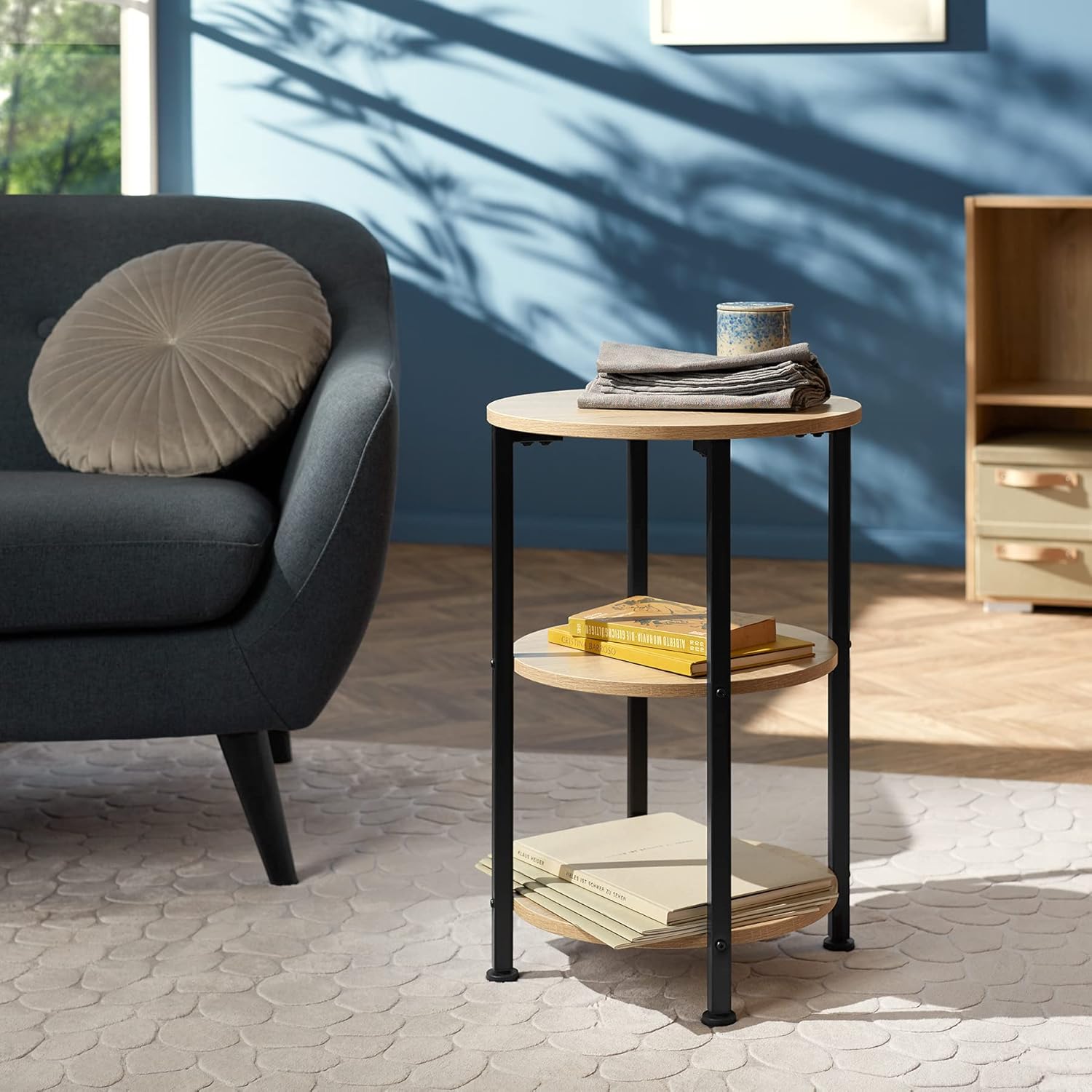 tectake Beistelltisch rund aus Holz und Metall, Industrie-Design, Couchtisch mit 3 Ebenen, für Wohnz