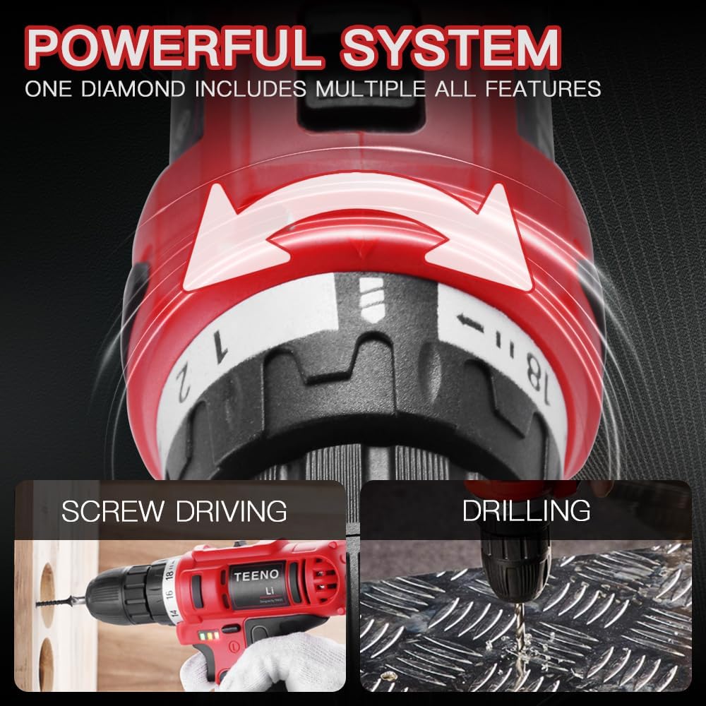 - Bessere Nutzung mit Batterien – leistungsstarke und widerstandsfähige 21 V Lithium-Batterien mit 1,5 Ah, Schnellladung in 1 Stunde, 18 + 1 Stufen zur Einstellung des Drehmoments