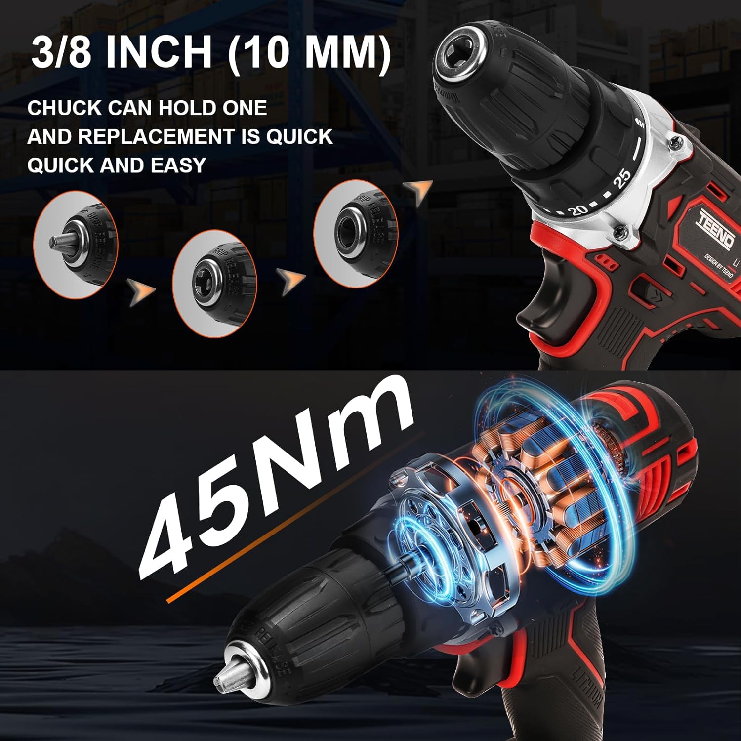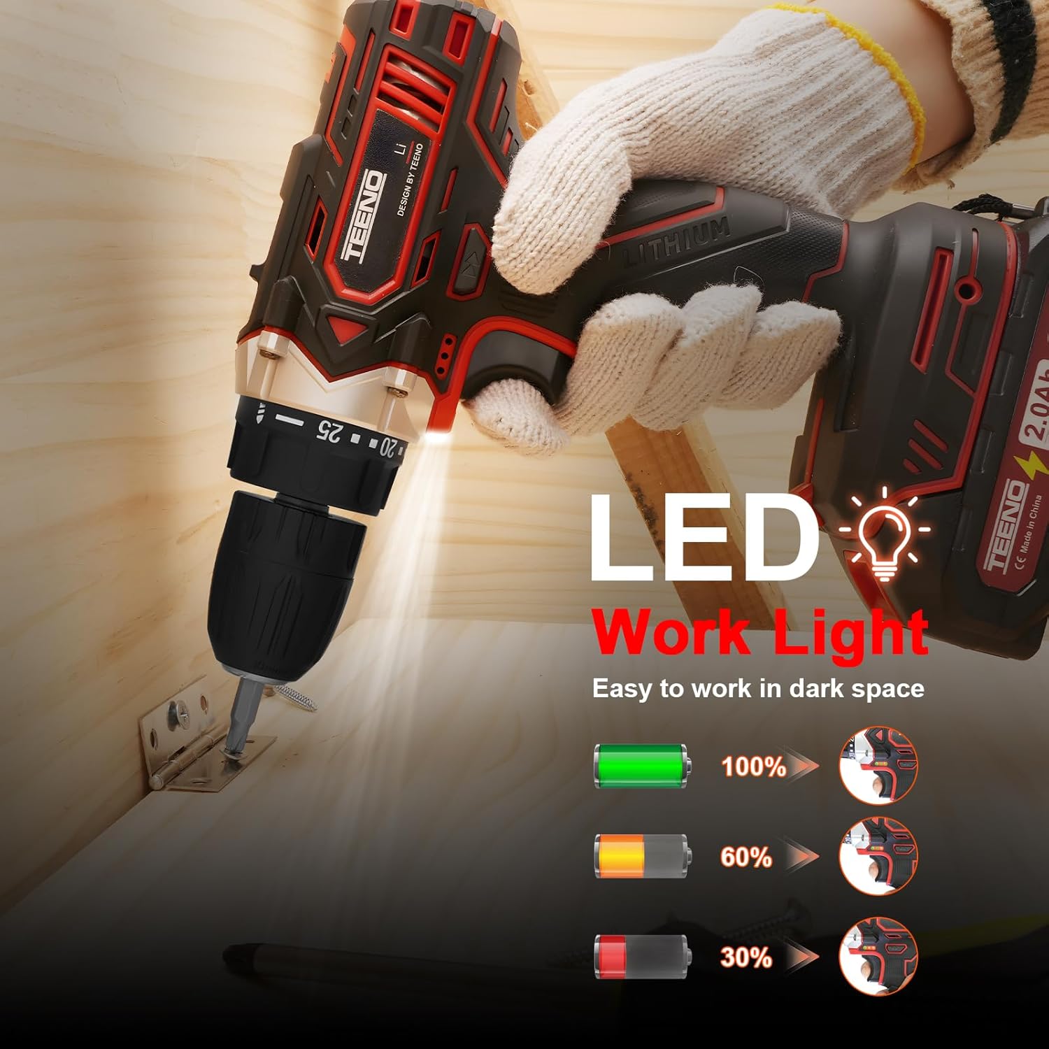 - Variable Geschwindigkeit: Der einstellbare Abzug bietet 2 Geschwindigkeiten 0-400 und 1600 U/min, und der seitliche Knopf ermöglicht das Ein- und Ausschrauben. Der Lithium-Ionen-Akku 21 V 1500 mAh bietet eine starke und effiziente Leistung