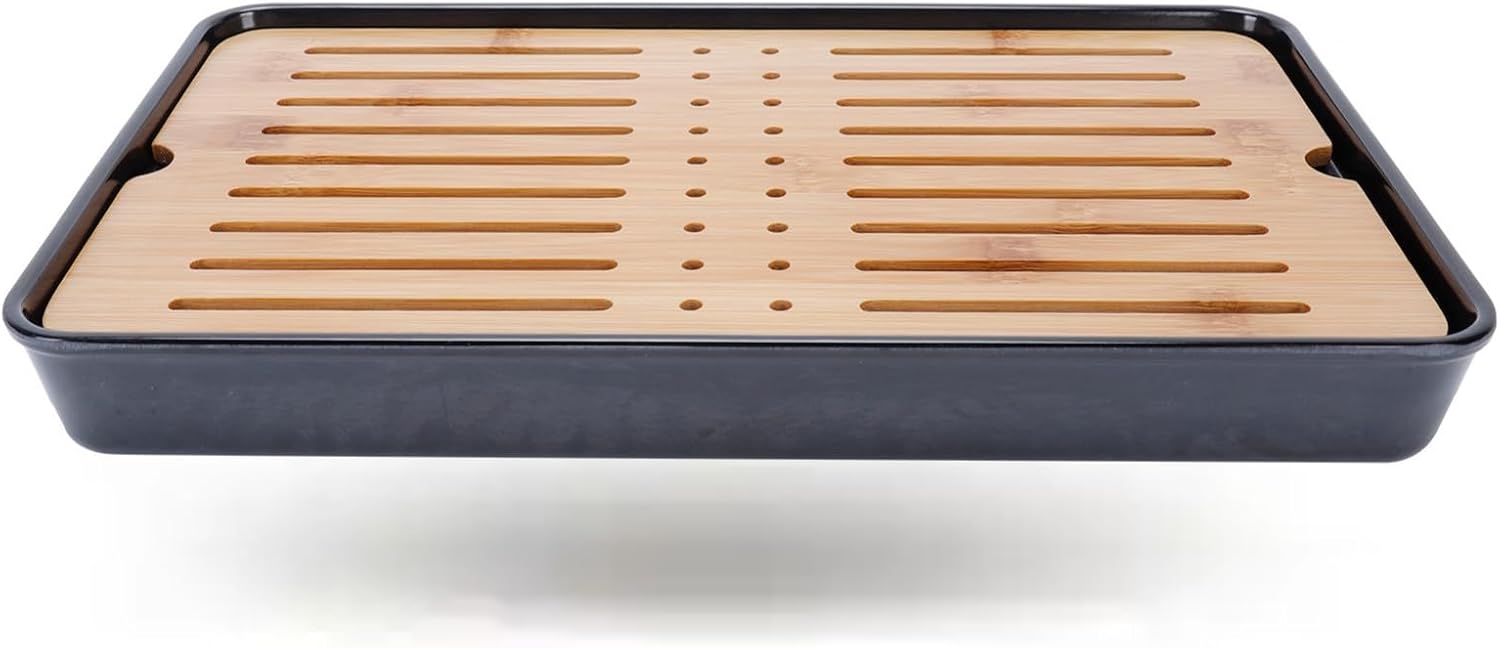 - HOCHWERTIGE HANDWERKSKUNST: Das Teetablett besteht aus hochwertigem, langlebigem Boden und natürlichem Bambusbrett, mit guter Textur, hart und langlebig, schön und praktisch. Es nimmt ein hohles Design an, das für die Entwässerung und Reinigung