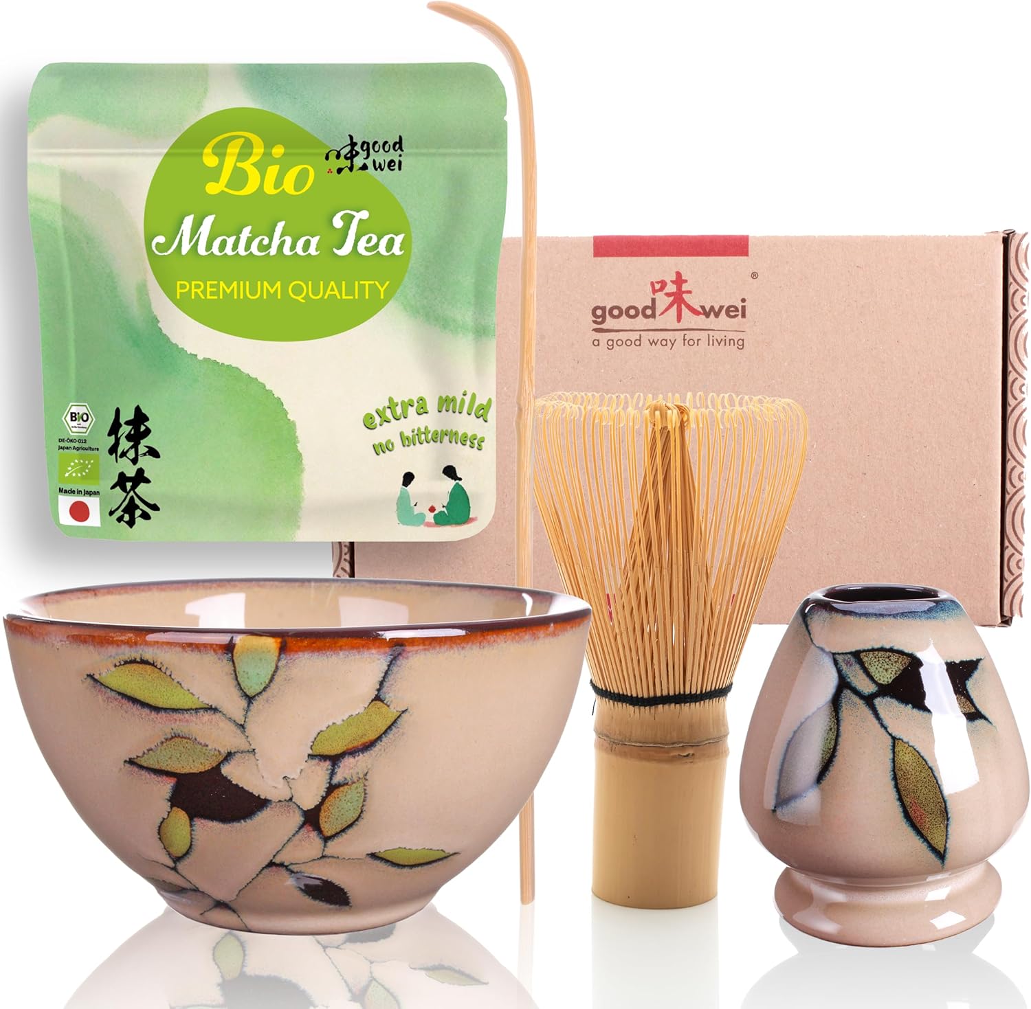 Teezeremonie-Set mit hochwertiger Matcha-Schale und echtem Bio Matcha aus Japan (Bamboo), Bamboo