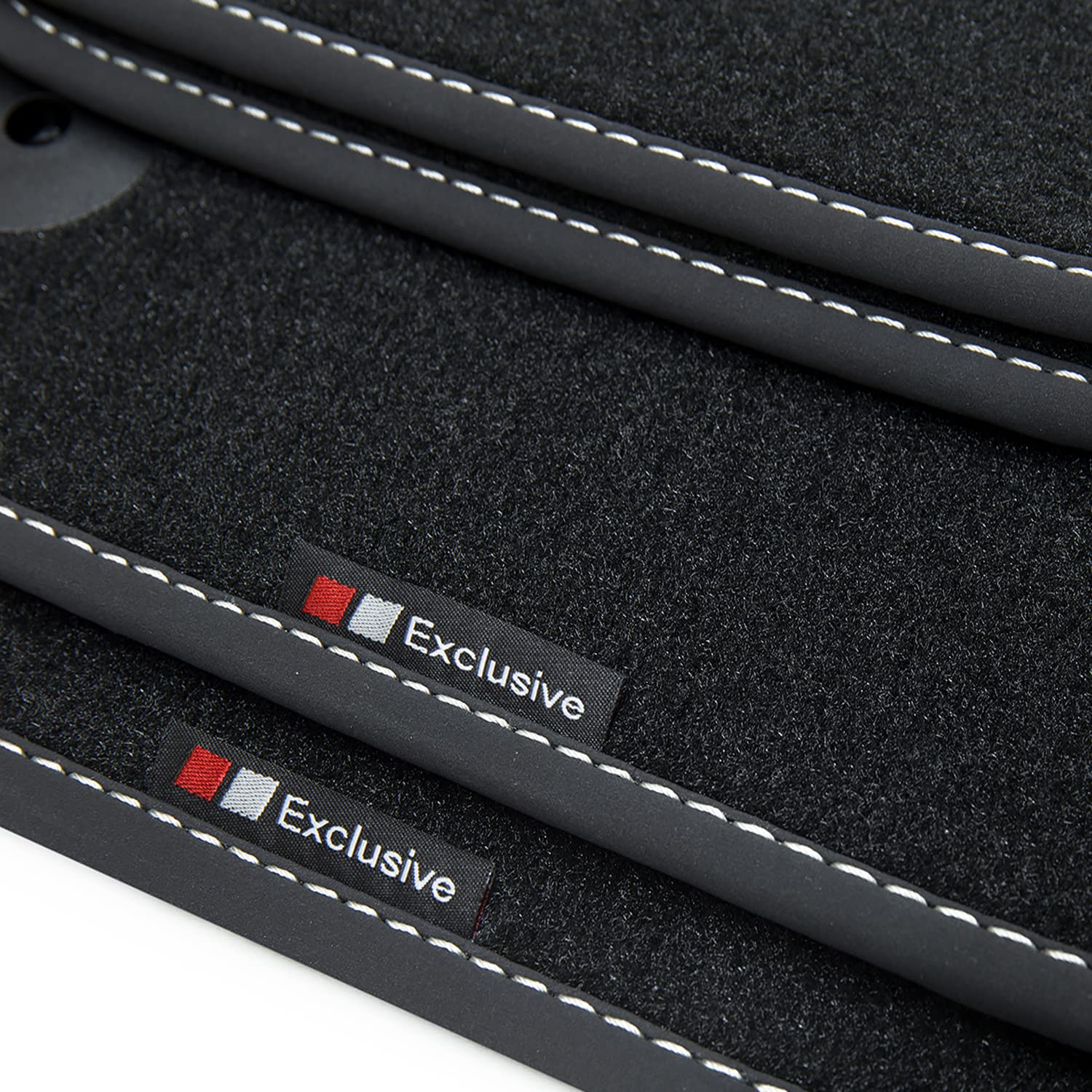 - Spezielle, Wasser und abriebfeste Rückenbeschichtung, Beidseitig gestickte 'Exclusive' Schriftzüge auf vorderen Fussmatten