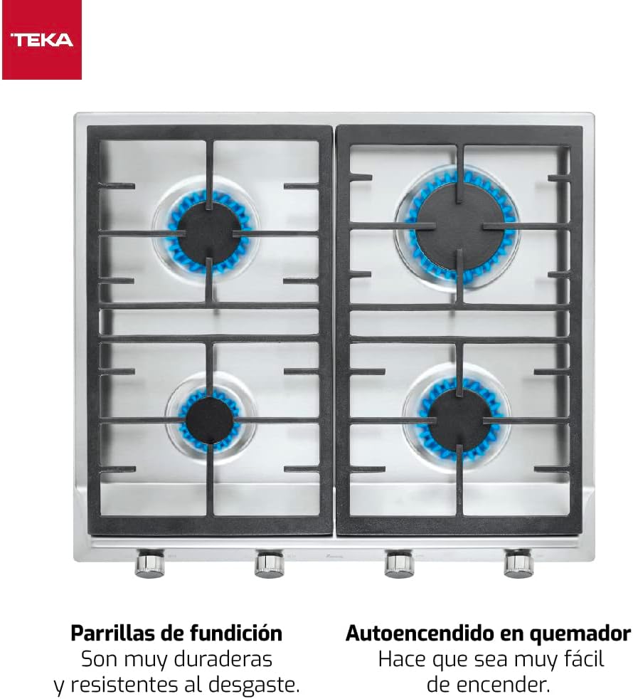 - Hohe Effizienz beim Kochen. Der Gaskocher Teka EX 60.1 4G AI AL CI NAT verfügt über 4 hocheffiziente Brenner, darunter einen 2,80-kW-Schnellbrenner, der sich ideal für verschiedene kulinarische Bedürfnisse vom Kochen bis zum Köcheln eignet.