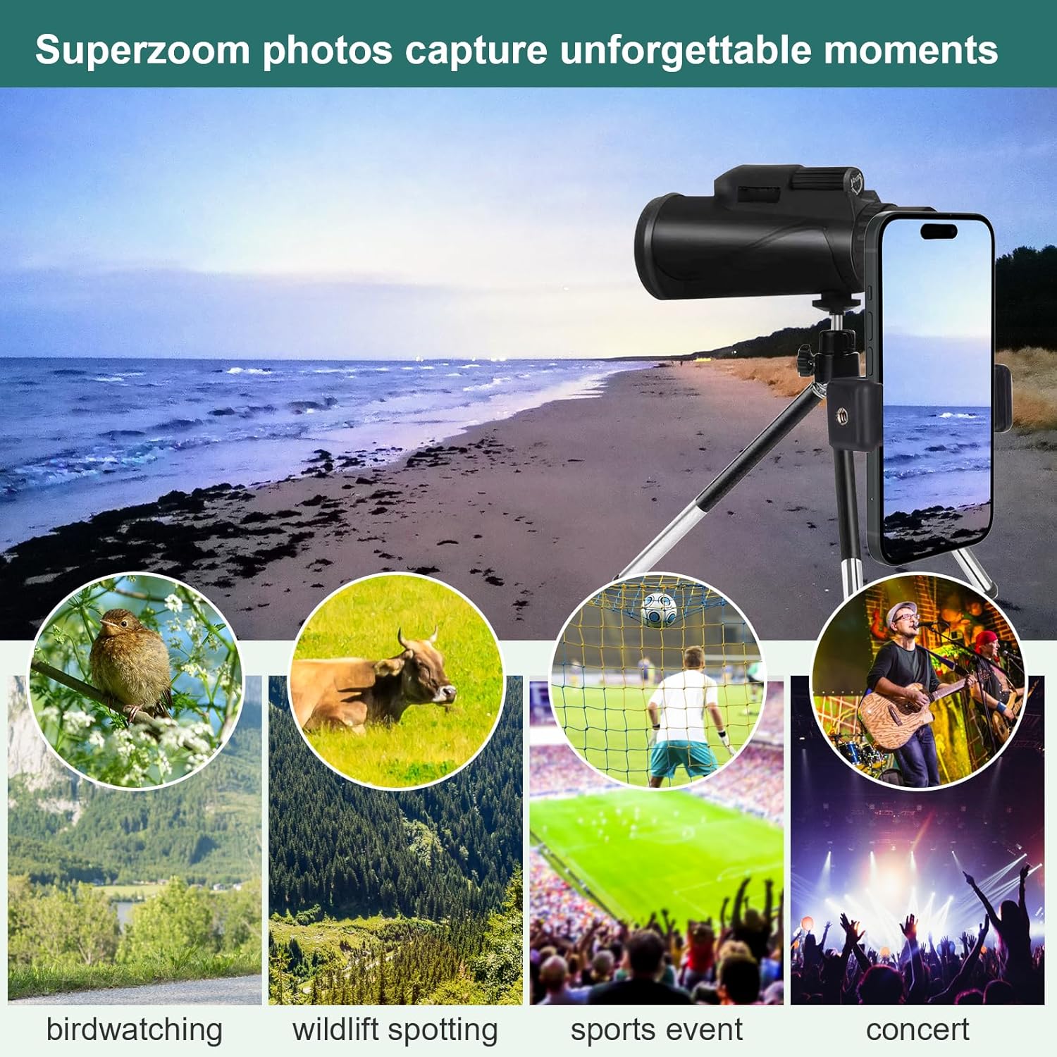 - 【Ideal für den Aussenbereich】Ob Sie Naturliebhaber, Sportfan oder Amateurastronom sind, dieses Monokular Teleskop für Erwachsene ist Ihr idealer Begleiter! 1xhochauflösendes Monokular-Teleskop, 1 x Handyhalter, 1 x verstellbares stabiles Stativ, 1
