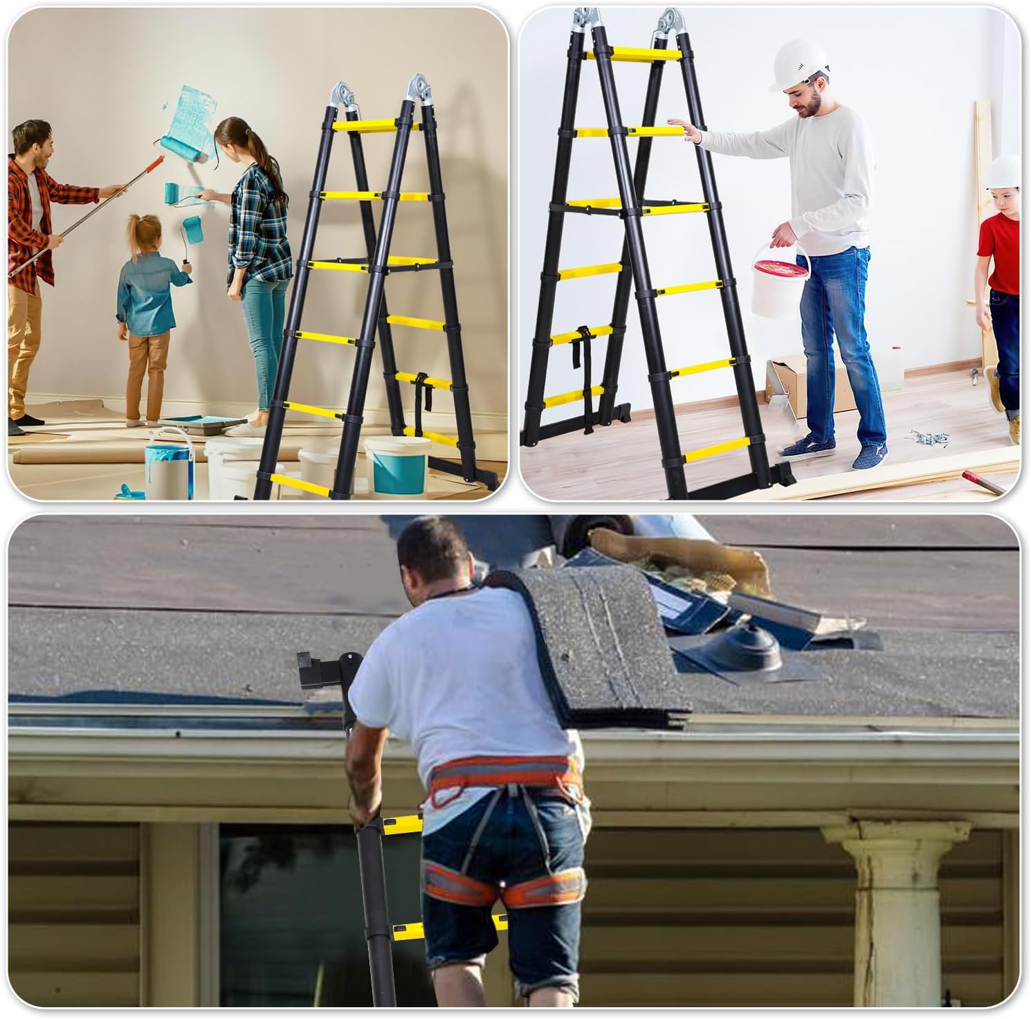 - 【Bequeme Aufbewahrung】Die 2,6/3,2/3,8/4,4 m lange Teleskopleiter lässt sich auf nur 0,74/0,81/0,86/0,91 m zusammenklappen und wiegt nur 6,3/8,2/10,3/12 kg. Die 2,5+2,5 m lange Teleskopleiter lässt sich auf 0,92 m zusammenklappen und wiegt 17,3 kg -