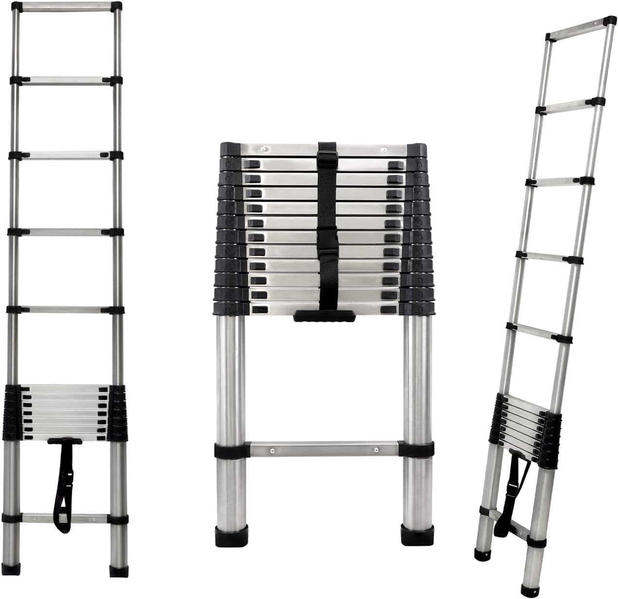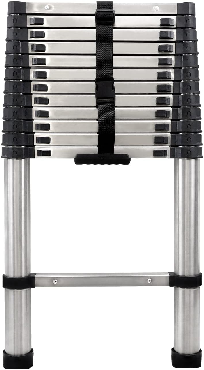 - Tragbar und praktisch: Kompakte und erweiterbare Grösse, einfach zu transportieren und zu lagern; Ein strapazierfähiger Verschlussgurt sichert die Leiter fest und ist leicht zu tragen.