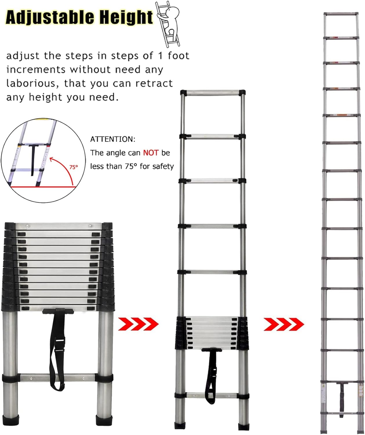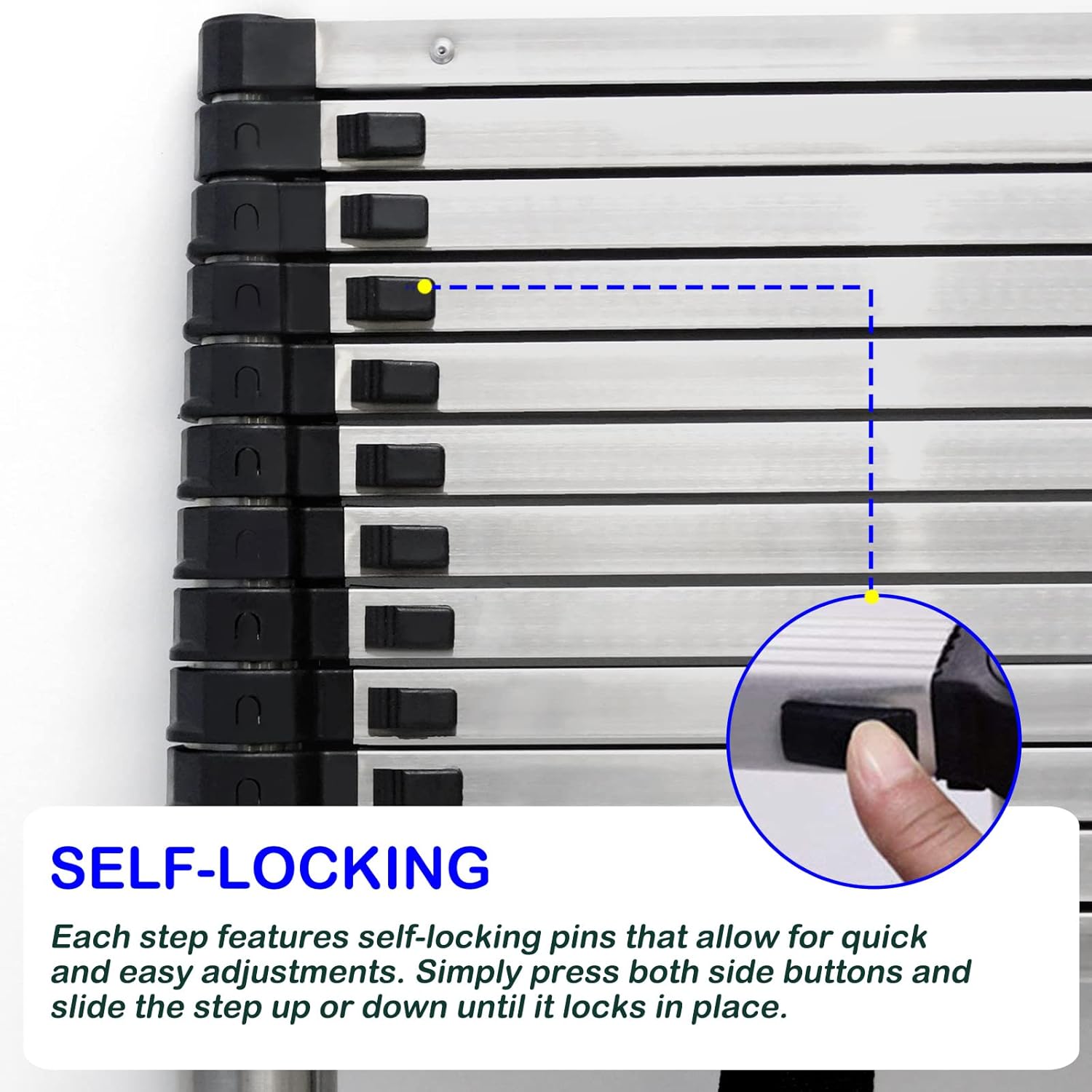 - 【Unabhängige Verriegelung】Separater Verriegelungsboden auf den Sprossen 2 bis 13. Ausziehbare Leiter hochwertige Konstruktion sorgt dafür, dass sich jeder Abschnitt sicher ausdehnt und zurückzieht. Jeder Schritt hat eine doppelte