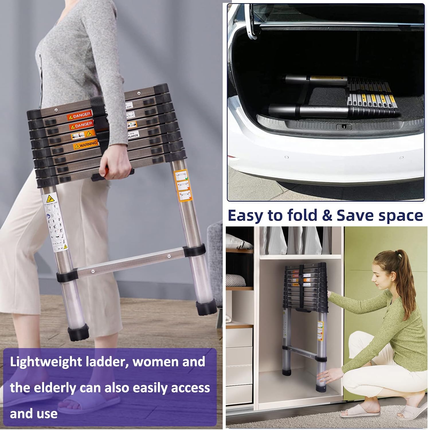 - Vielseitige ausziehbare Klappleiter: Unsere 3,6 m lange Teleskop-Ausziehleiter aus Edelstahl ist perfekt für Hausarbeiten im Innenbereich und Outdoor-Aktivitäten. Diese nützliche Trittleiter sollte Teil jedes Haushalts- und Werkzeugsets sein. Es kann