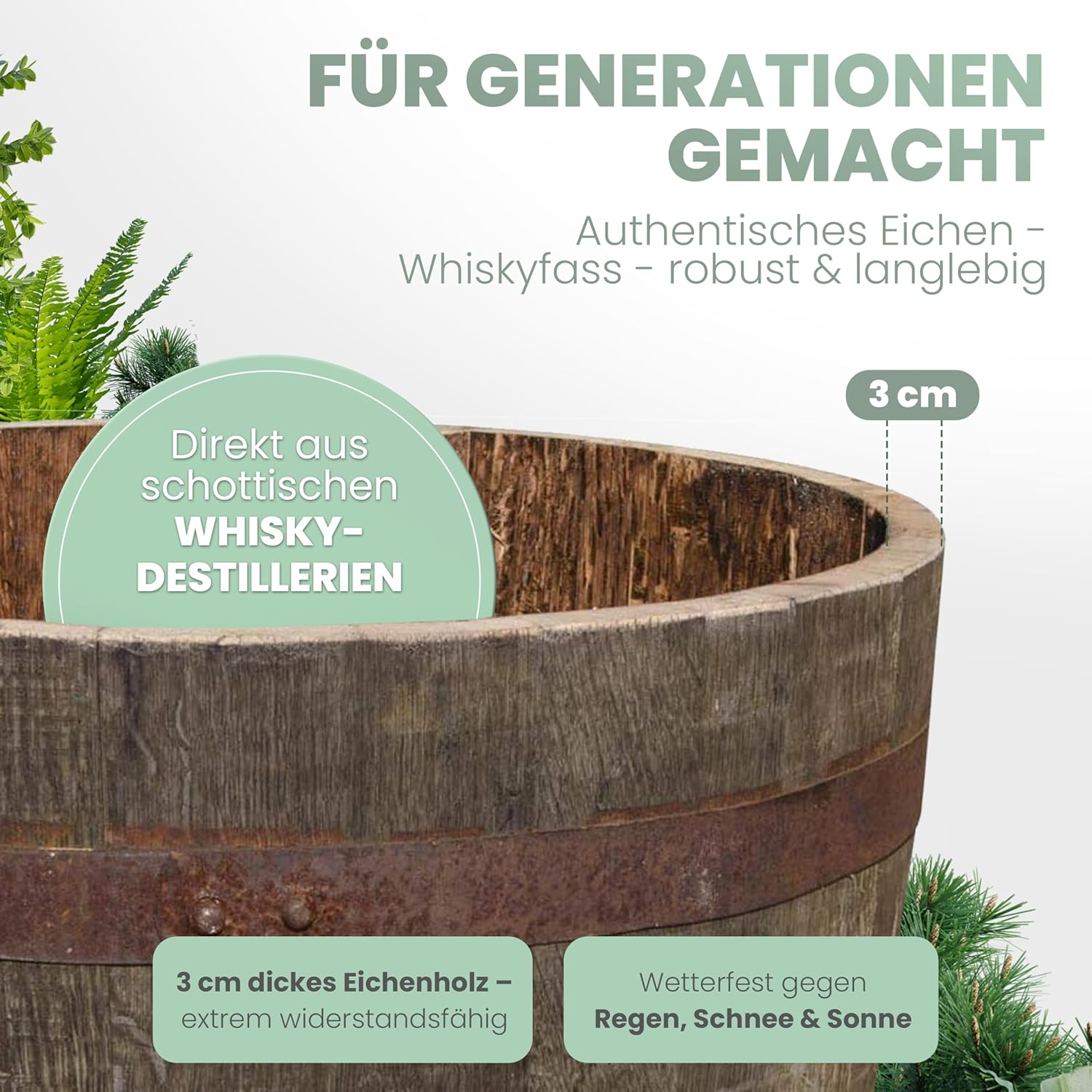 • Halbes Fass, halbiertes Fass aus einem originalen schottischen Whiskyfass mit FSC-Recycled Zertifikat!