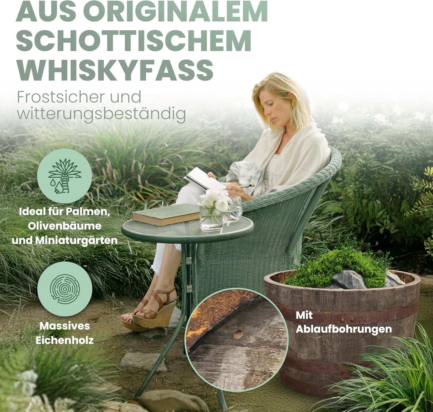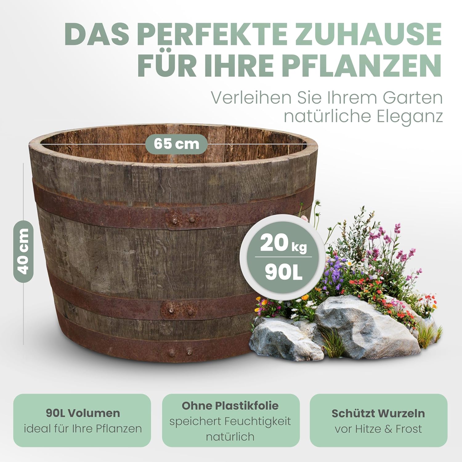 • Aus massiver Eiche, daher frostsicher und witterungsbeständig. Isoliert im Winter sogar das Wurzelwerk.Die massive Eiche isoliert im Winter zusätzlich. Perfekt für Palmen und Oliven.