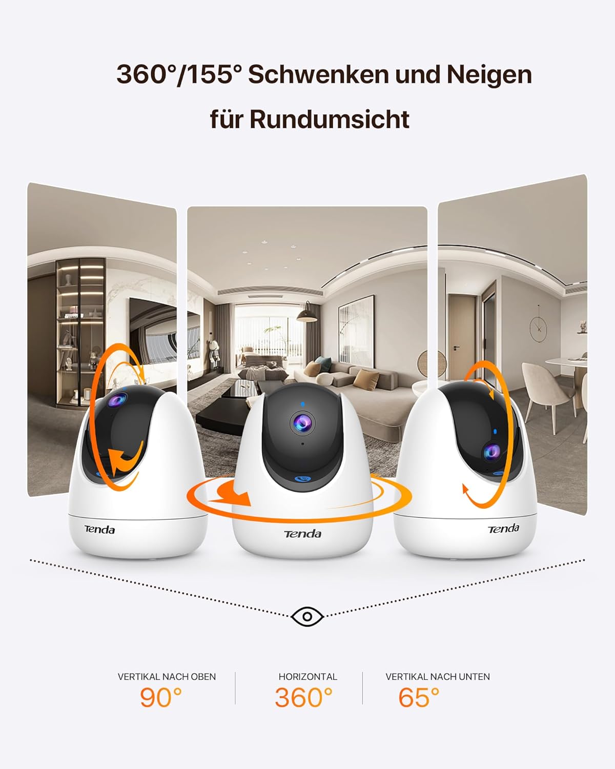 • 【Panoramablick & Privatsphäre-Modus】 360° horizontale und 155° vertikale Sichten erweitern effektiv den Überwachungsbereich. Wenn Sie den Privatsphäre-Modus auswählen, wird das Kameraobjektiv automatisch blockiert