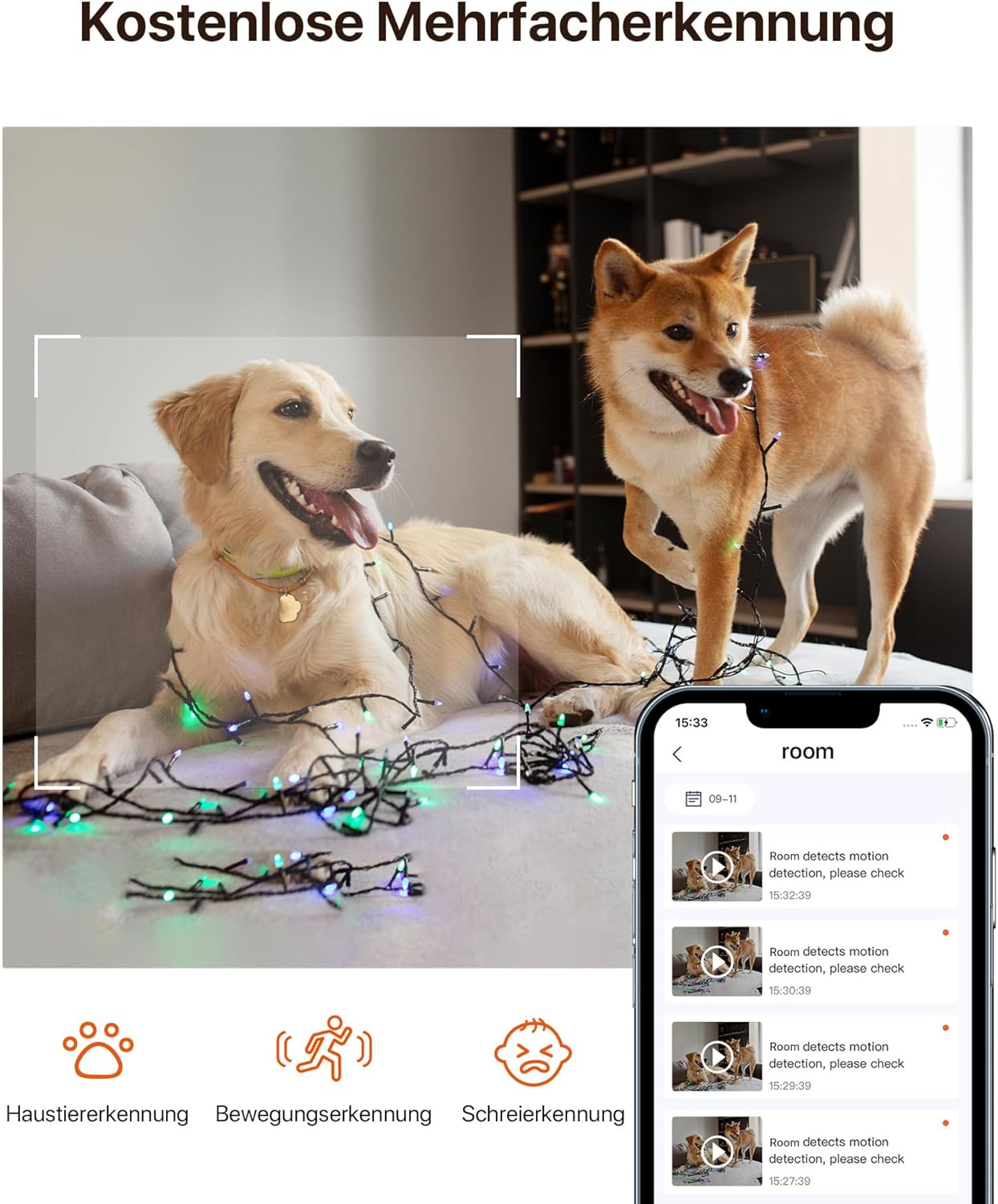 • 【Bewegungsmelder, Sirene und Push-Nachricht für Ihre Sicherheit】Im Sicherheitsmodus, wird die Kamera den menschlichen Körper automatisch identifizieren und verfolgen. Sobald menschliche Bewegungen erkannt werden, startet die Kamera automatisch die Aufnahme und gibt sowohl akustischen als auch visuellen Alarm, um Diebe abzuschrecken. Gleichzeitig erhält auch Ihr Telefon eine Push-Nachricht. (Optional)