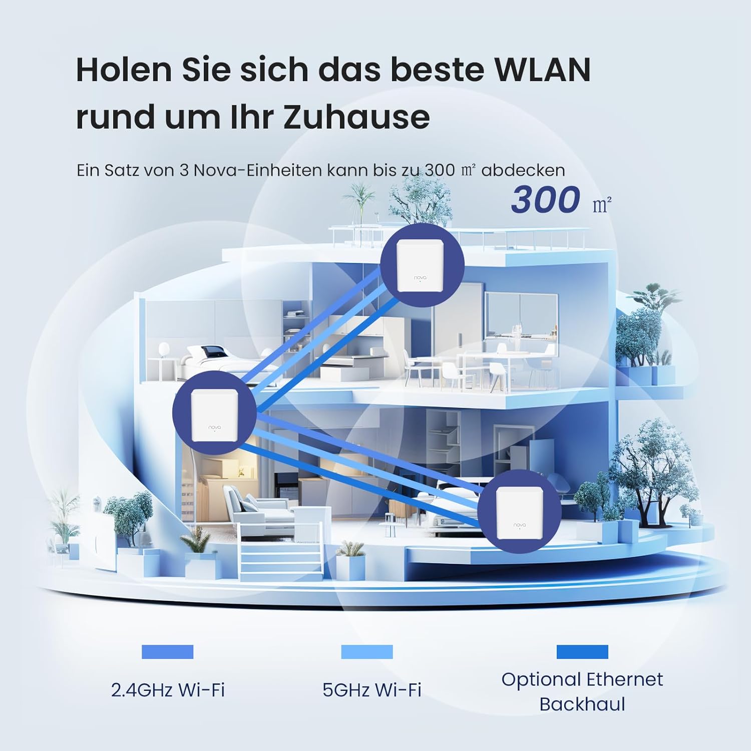 - 【WiFi-Mesh System】 Verstärktes WLAN-Signal durch intelligente Antennen mit hoher Verstärkung und 6 Signalverstärkungsmodulen, Tenda Mesh MX3 kann problemlos bis zu 2500ft²/230m² mit 3 Knoten abdecken, wodurch alle nicht abgedeckten Bereiche
