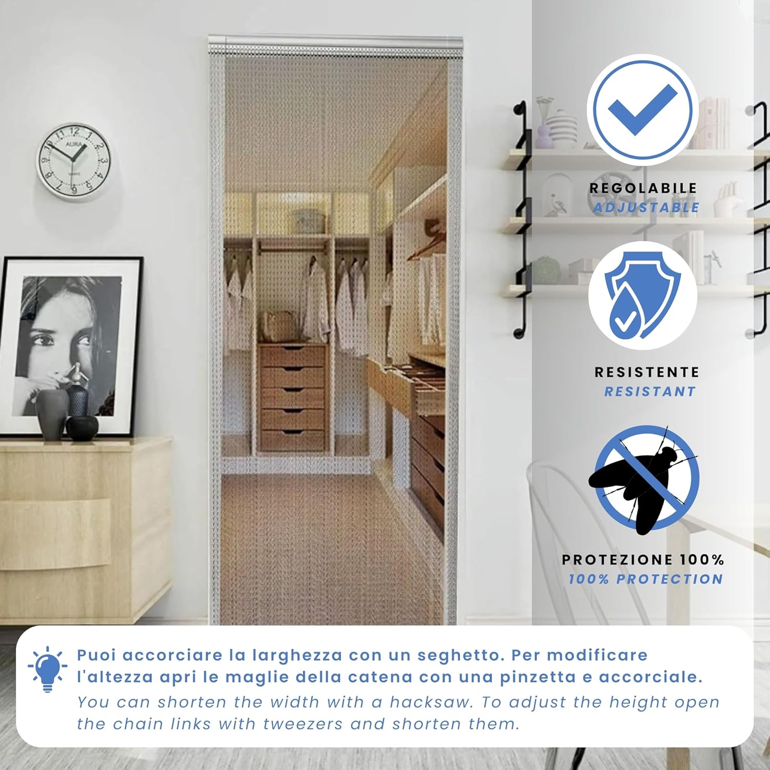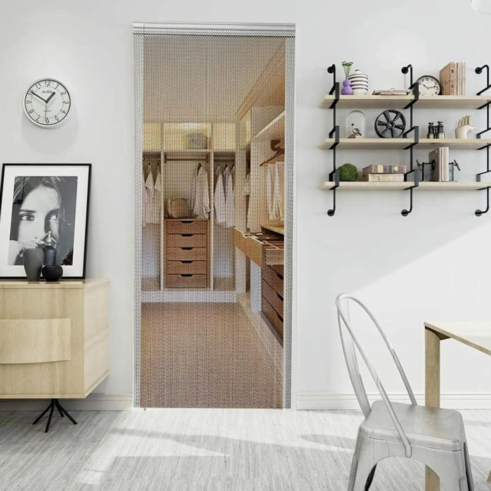 - Fliegenvorhangtür 𝐚𝐮𝐬 𝐞𝐥𝐨𝐱𝐢𝐞𝐫𝐭𝐞𝐦 𝐀𝐥𝐮𝐦𝐢𝐧𝐢𝐮𝐦 𝐟𝐮̈𝐫 𝐥𝐚̈𝐧𝐠𝐞𝐫𝐞 𝐋𝐞𝐛𝐞𝐧𝐬𝐝𝐚𝐮𝐞𝐫. Die einzelnen Drähte hängen auf einer glatten 𝐅𝐫𝐨𝐧𝐭𝐬𝐜𝐡𝐢𝐞𝐧𝐞 𝐚𝐮𝐬 𝐀𝐥𝐮𝐦𝐢𝐧𝐢𝐮𝐦 𝐊𝐨𝐫𝐫𝐨𝐬𝐢𝐨𝐧𝐬𝐬𝐜𝐡𝐮𝐭𝐳.