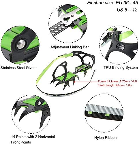 • ▎Stabil und sicher: Das Design mit 14 Zähnen, Nylongeflecht und Schnalle in der Ferse kann an den Stiefeln befestigt werden und bietet so mehr Stabilität und Sicherheit.