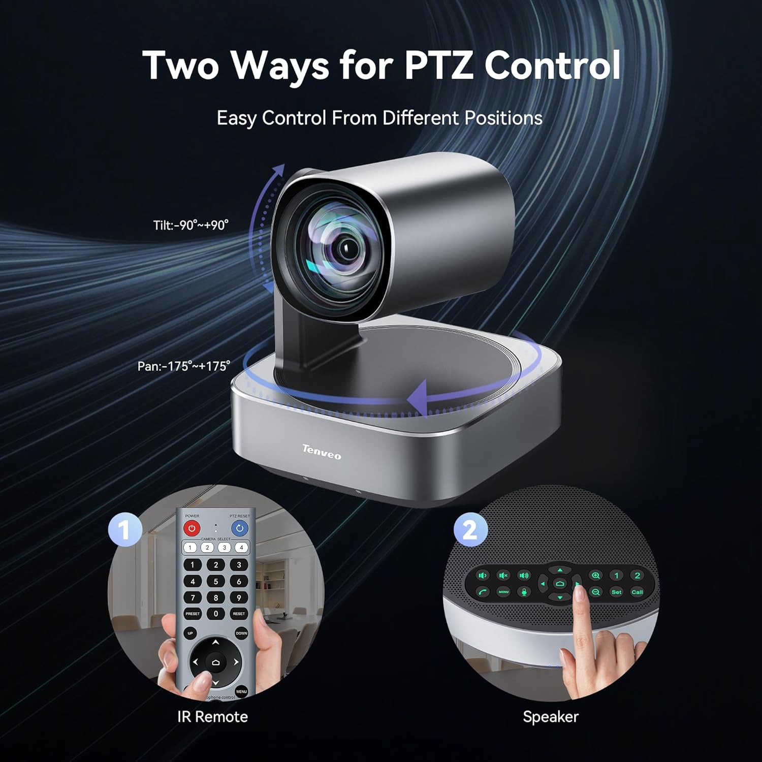 - 4K UHD und 12-fach optischer Zoom-Kamera: Premium PTZ Kamera mit Freisprecheinrichtung Konferenzsystem. Die Kamera verwendet einen CMOS-Sensor, der ein echtes 4K-Ultra-HD-Bild liefert und das gesamte Bild mit dem Weitwinkelobjektiv reibungslos anzeigen