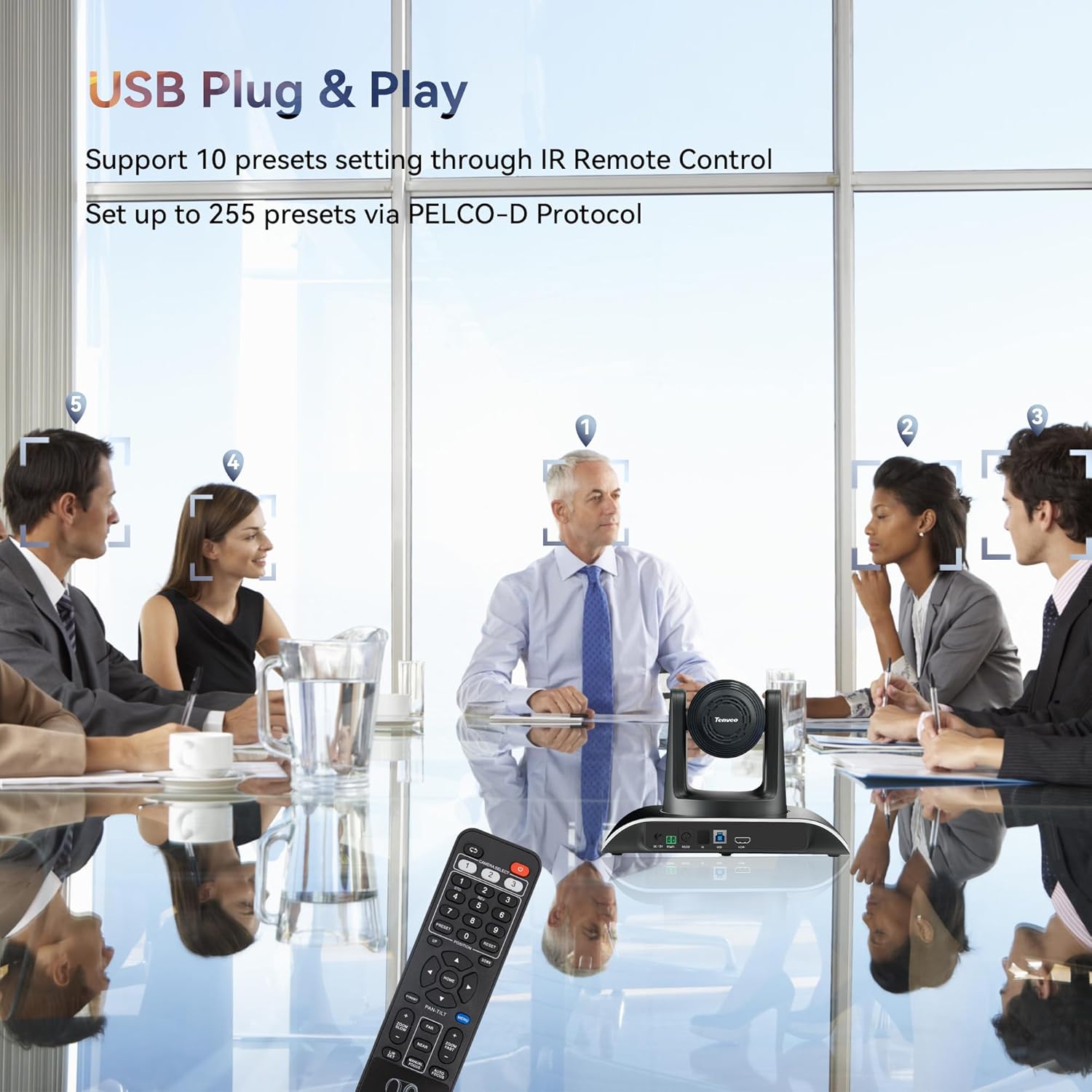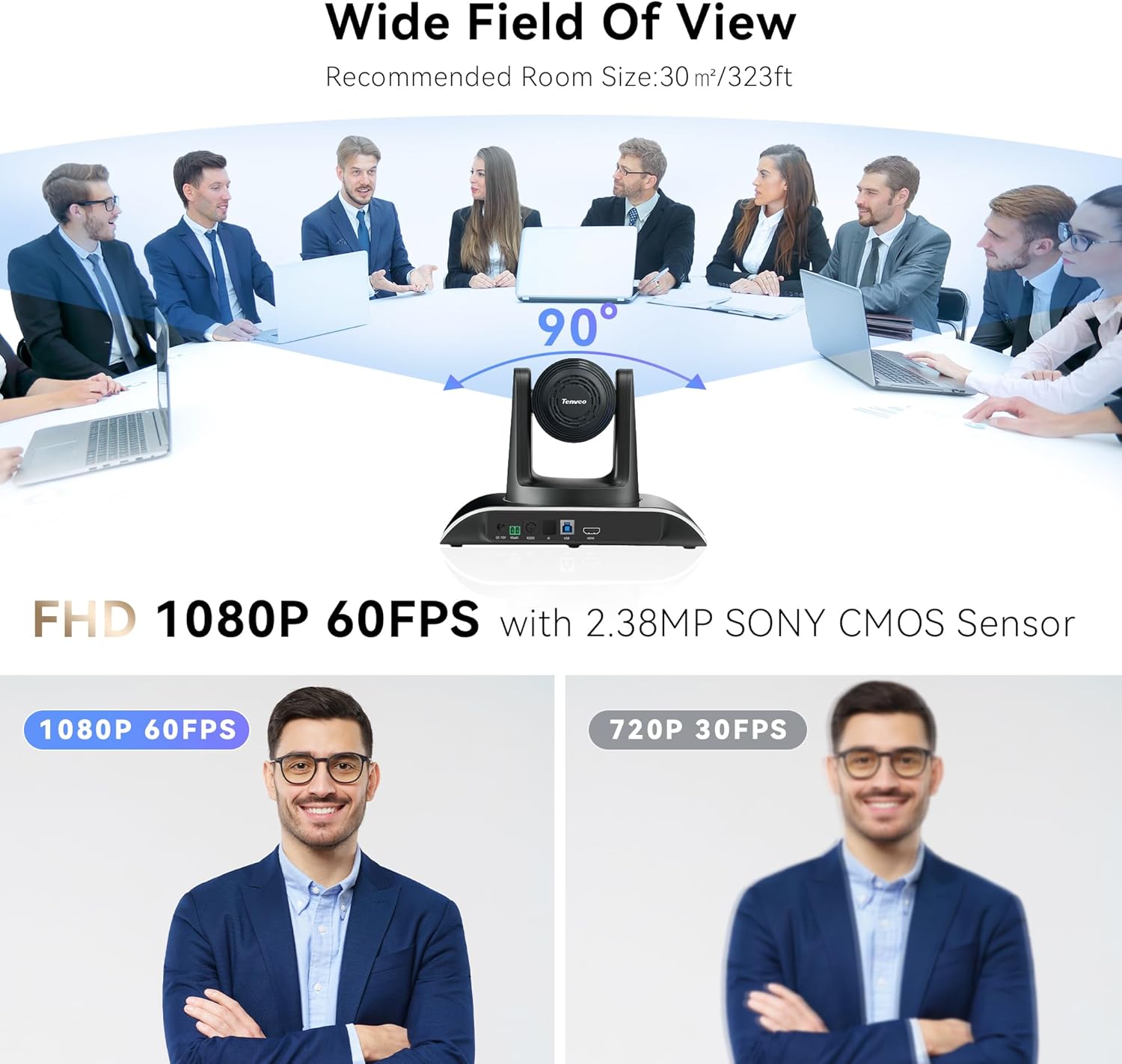 - 【1080P FHD 60FPS Videokonferenzkamera 】Die professionelle Konferenzraumkamera mit 12 fachem optischem Zoom verfügt über einen 1./2.8" CMOS mit 2,38 Megapixel. Die Full HD 1080p Kamera zeigt kristallklare Bilder mit perfekter Farbwiedergabe und
