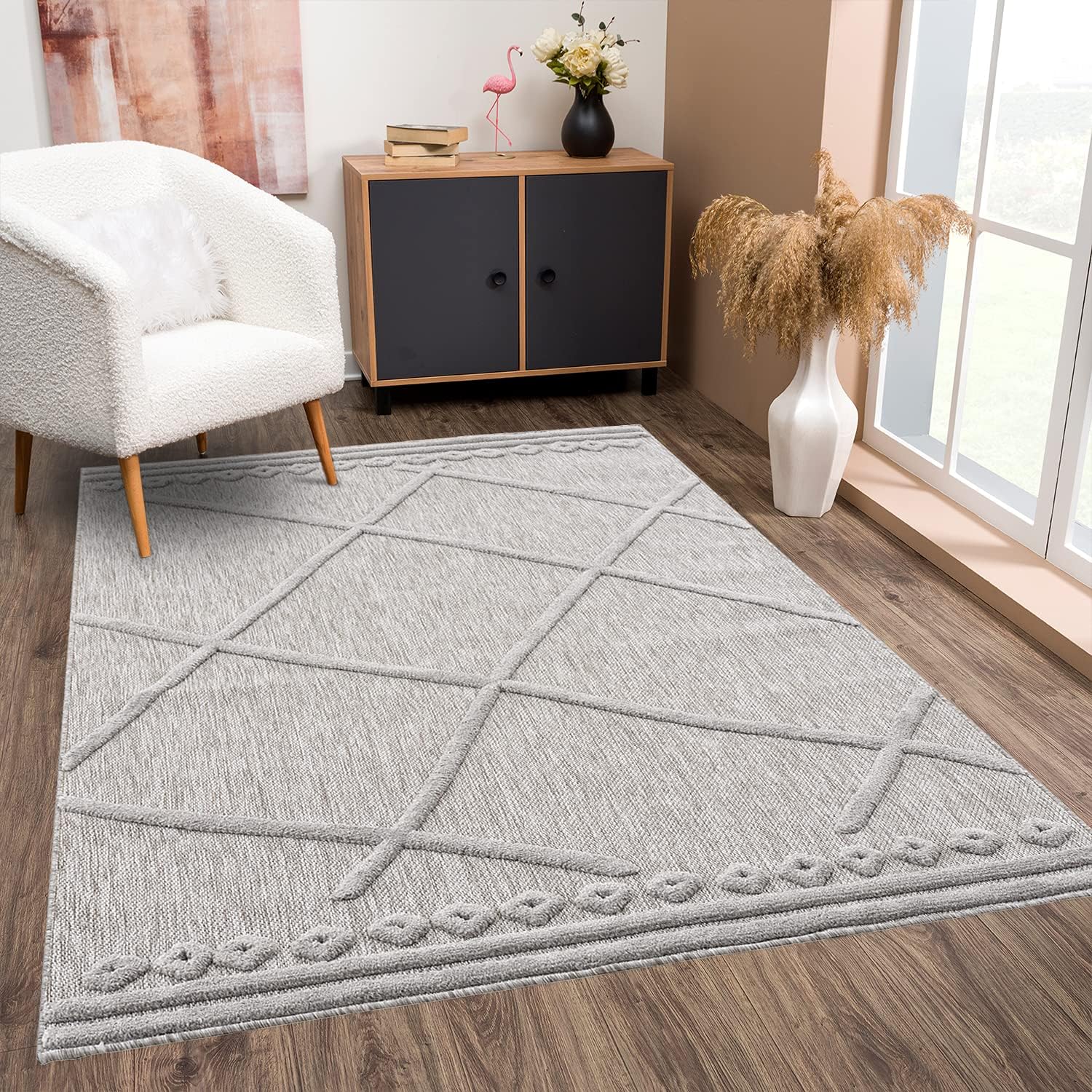 - SKANDI-STIL geometrisches Design und zeitloses Grau lassen den Teppich besonders leicht kombinieren.