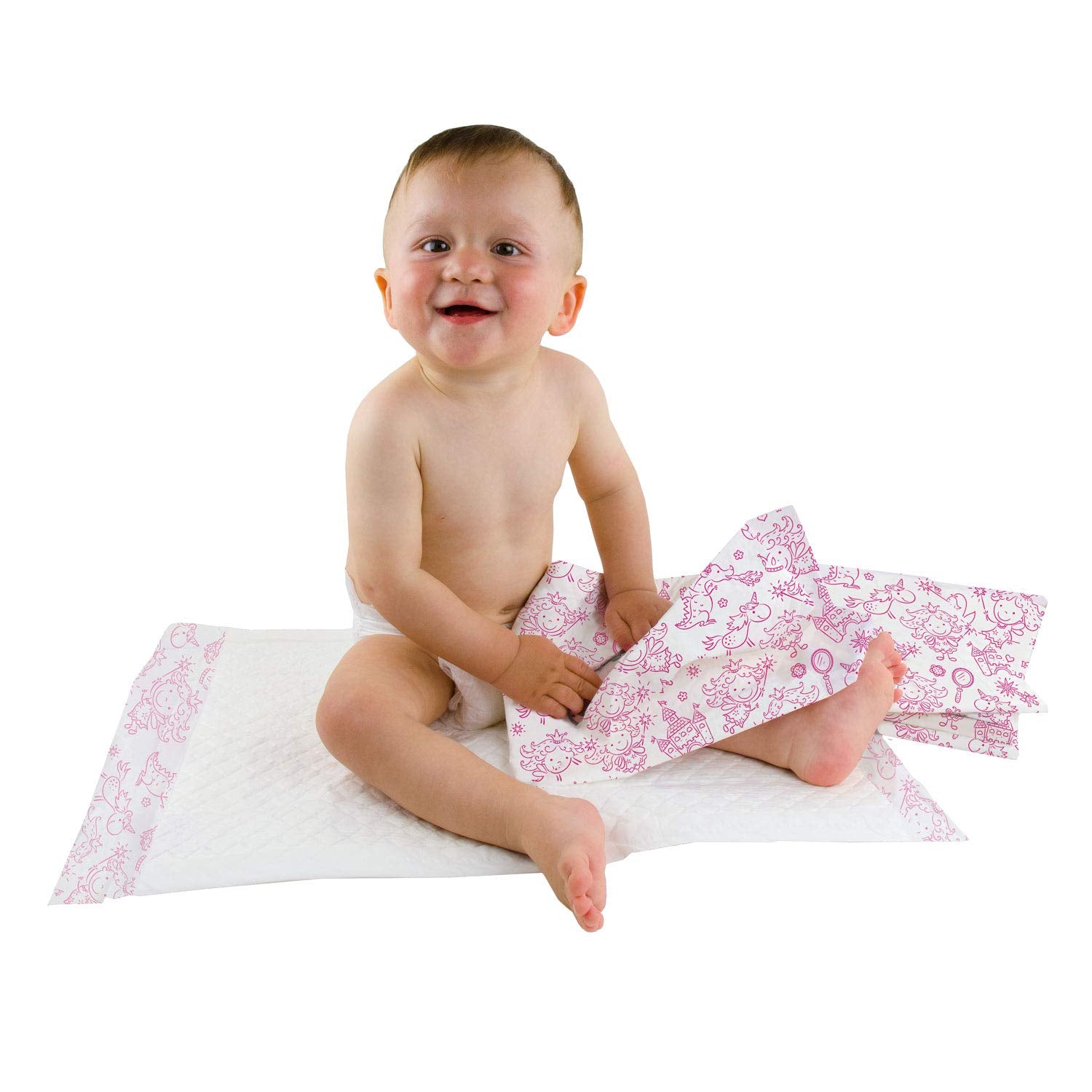 - Produkt 1: SPARER-SET: Die Teqler Baby-Wickelunterlagen gibt es im Sparer-Set zu je 50 Stück pro Paket und sind jeweils praktisch zu je 10 Stück in einer hygienischen Folie eingeschweisst. Die Unterlagen sind in den Motiven: Dschungel, Prinzessin und