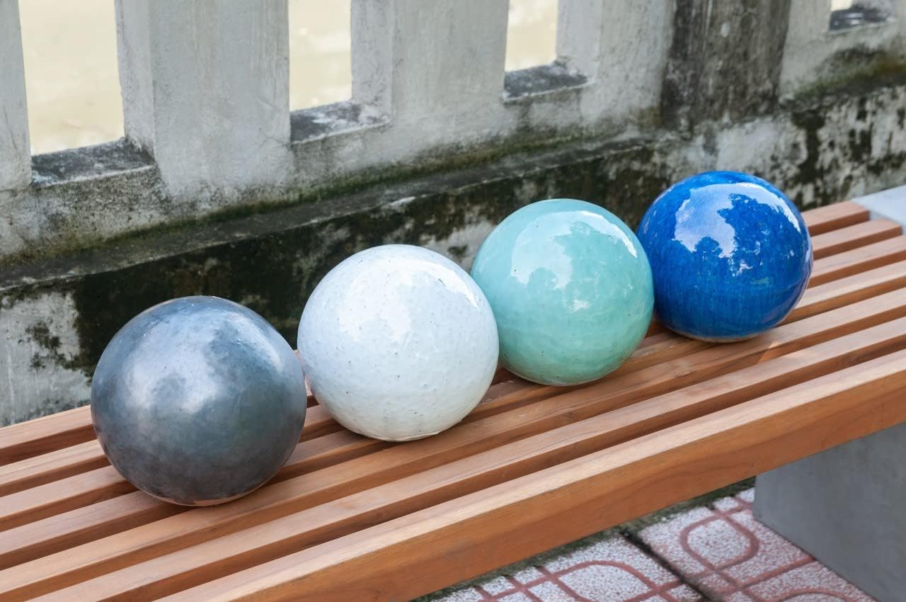 - Die Kugeln sind massiv und schwer ausgearbeitet. Ein Loch an der Unterseite sorgt für einen sicheren Stand auf jedem Terrain.