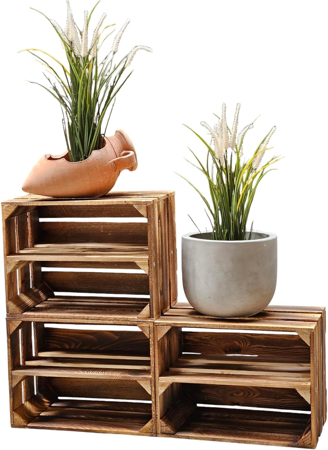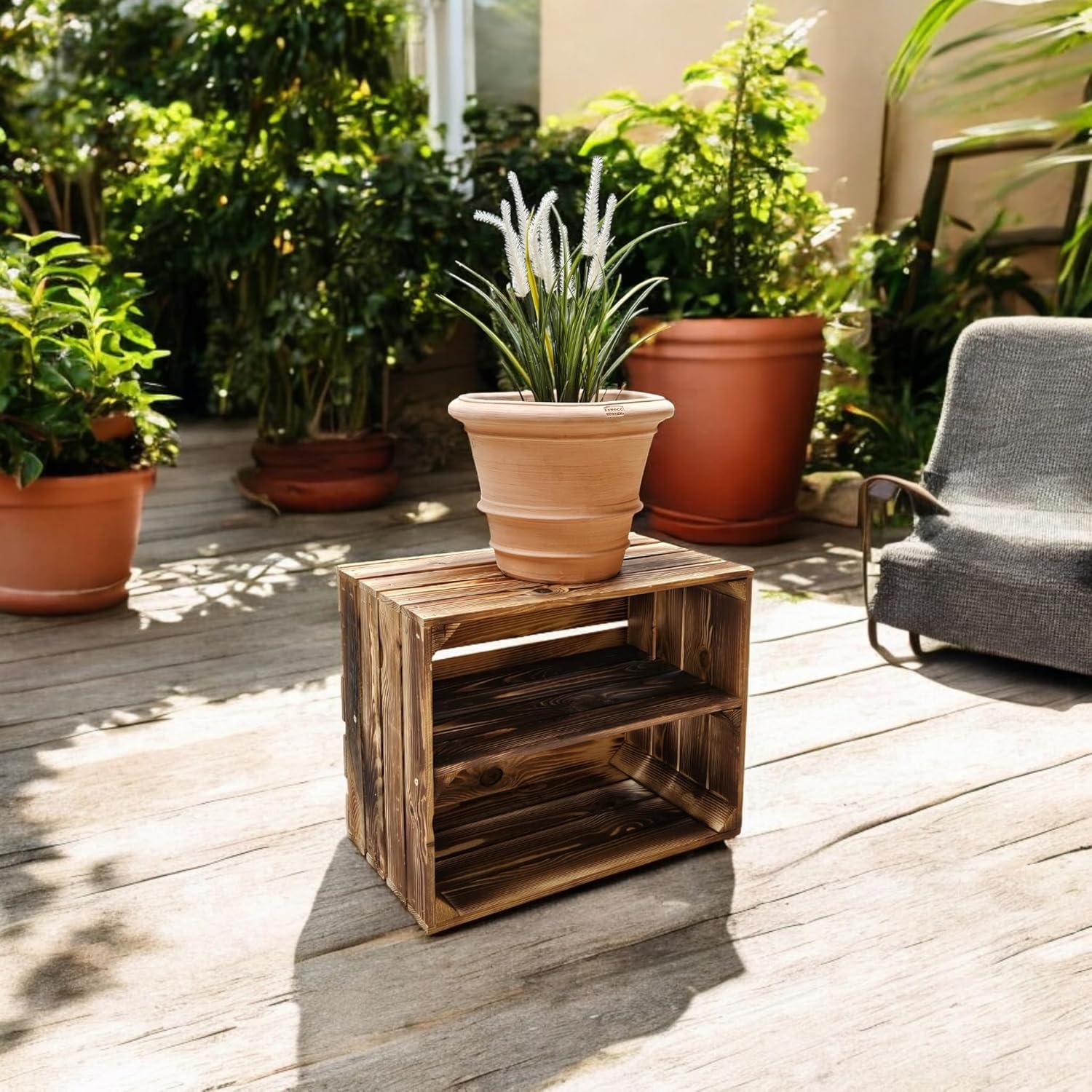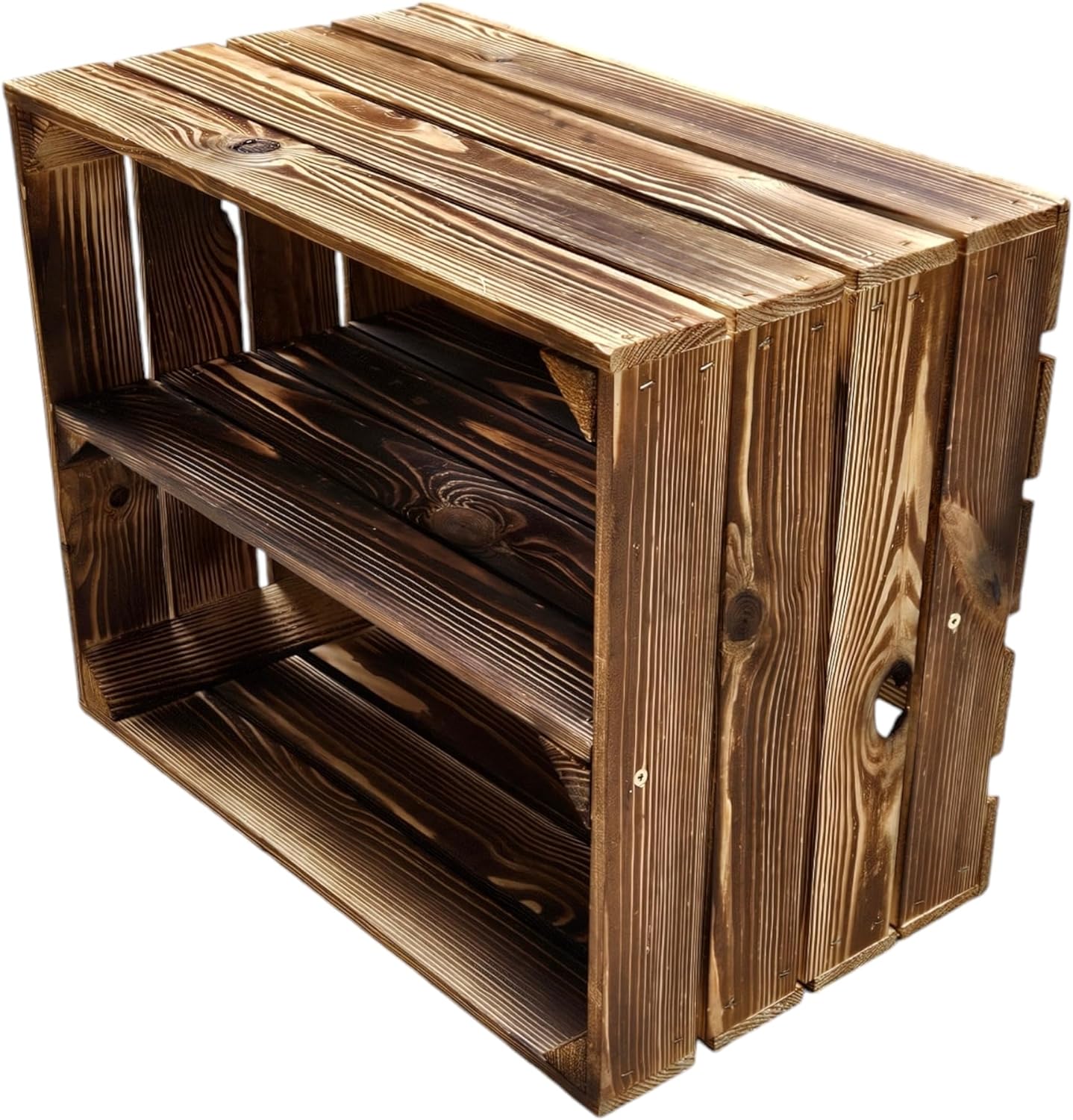 - Bring Natur ins Haus: Unsere geflammten Holzkisten verwandeln jeden Raum in eine gemütliche Oase. Ob als Bücherregal, Deko-Element oder praktischer Aufbewahrungskorb – sie sind ein echter Hingucker!