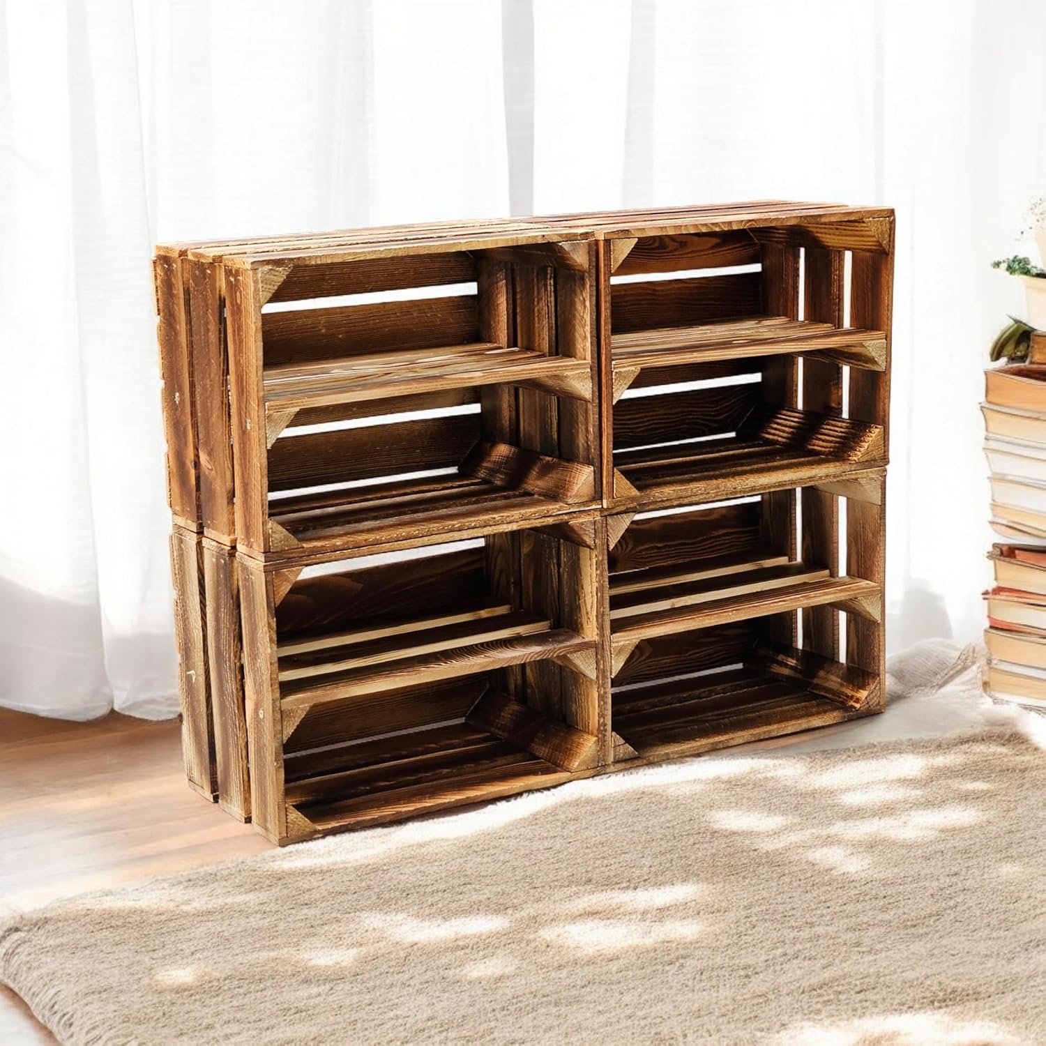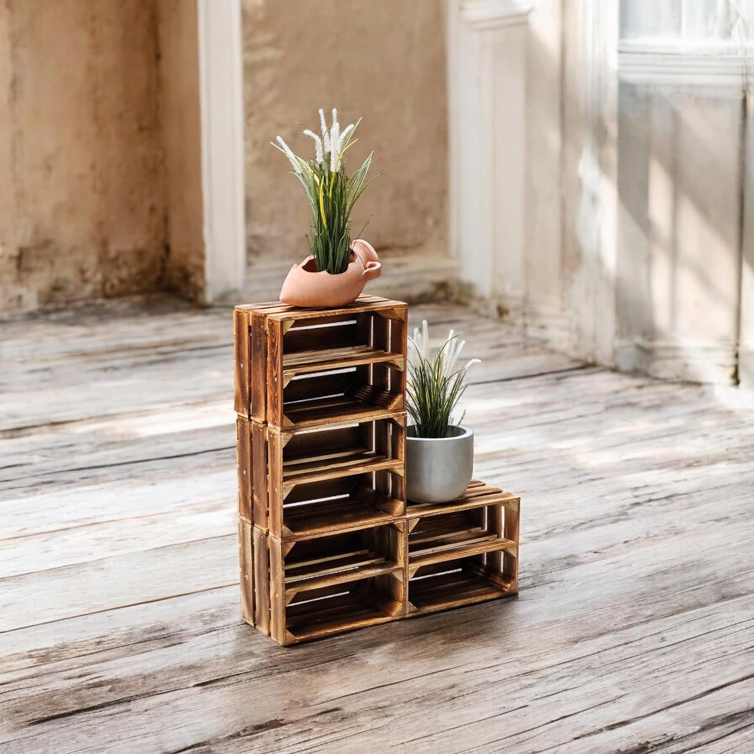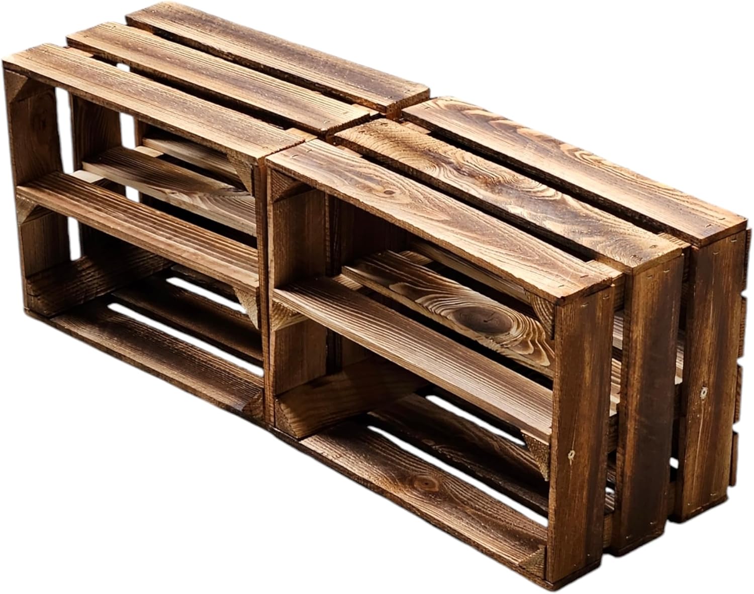 - Bring Natur ins Haus: Unsere geflammten Holzkisten verwandeln jeden Raum in eine gemütliche Oase. Ob als Bücherregal, Deko-Element oder praktischer Aufbewahrungskorb – sie sind ein echter Hingucker!