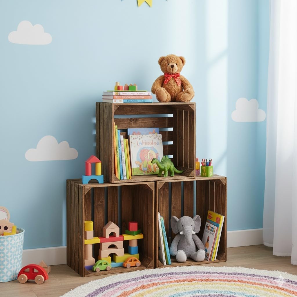 - Stapeln, kombinieren, dekorieren: Unsere Holzkisten sind vielseitig kombinierbar. Erstelle individuelle Regalsysteme oder verwende sie als Raumteiler. Deiner Kreativität sind keine Grenzen gesetzt!
