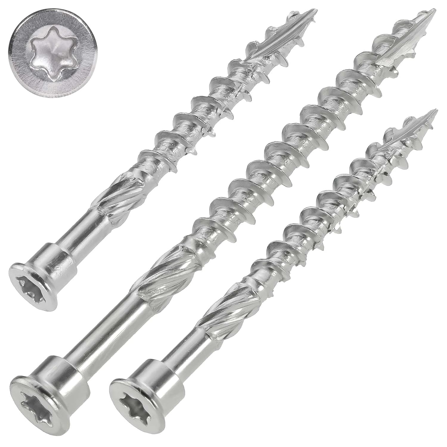 - 4.5x50 Terrassenschrauben mit Zylinderkopf (Stanzkopf) für Terrassendielen und Holzfassaden zur Befestigung von Paneelen auf Holzunterkonstruktion z.B. Fassadenbefestigung, Terrassenbefestigung mit Douglasien-, Lärchenholz, Massaranduba, Bongossi,