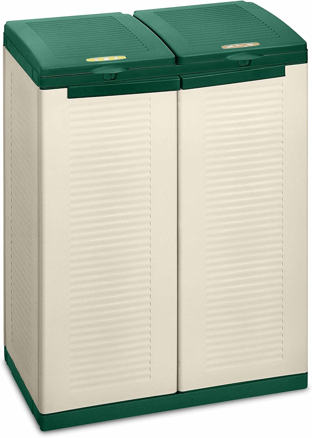 - Merkmale: Ecocab 2 Kunststoffbehälter. Schrank mit 2 Türen für die Abfalltrennung. Beige mit grünen Details