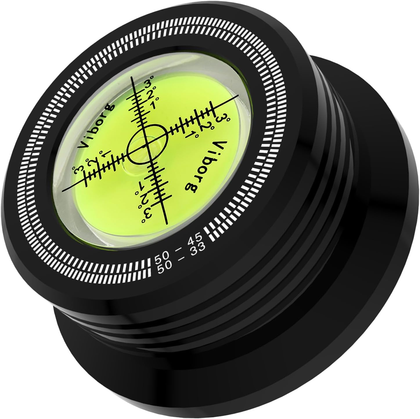 • 【LEVEL METER】Plattengewichtsstabilisator mit eingebauter Präzisionswasserwaage, die Ihnen die Rotationsgeschwindigkeit der LP-Scheibe anzeigt.