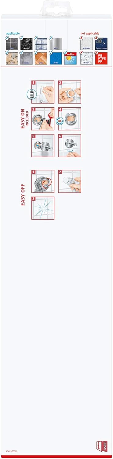- Spurlos wieder ablösbar: Nach dem Entfernen ist das Badaccessoire mit dem separat erhältlichen Adapter BK20-2 wiederverwendbar - der Lieferumfang umfasst sämtliches zur Montage erforderliche Material