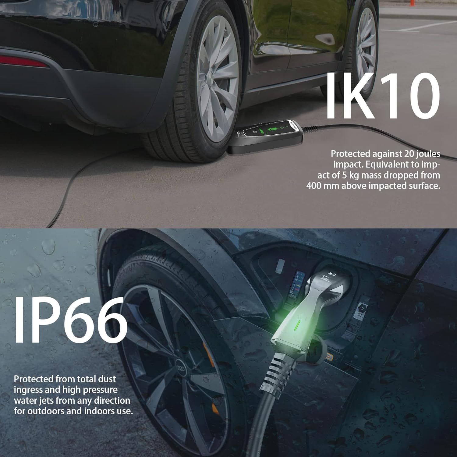 - ▶ Langlebig und umweltfreundlich | TPU-Schale macht unser EV-Ladekabel verschleissfester, alterungsbeständiger, umweltfreundlicher und bietet eine ausgezeichnete Hitze- und Kältebeständigkeit. IK10 Geschützt gegen Stösse mit 20 Joule. Entspricht