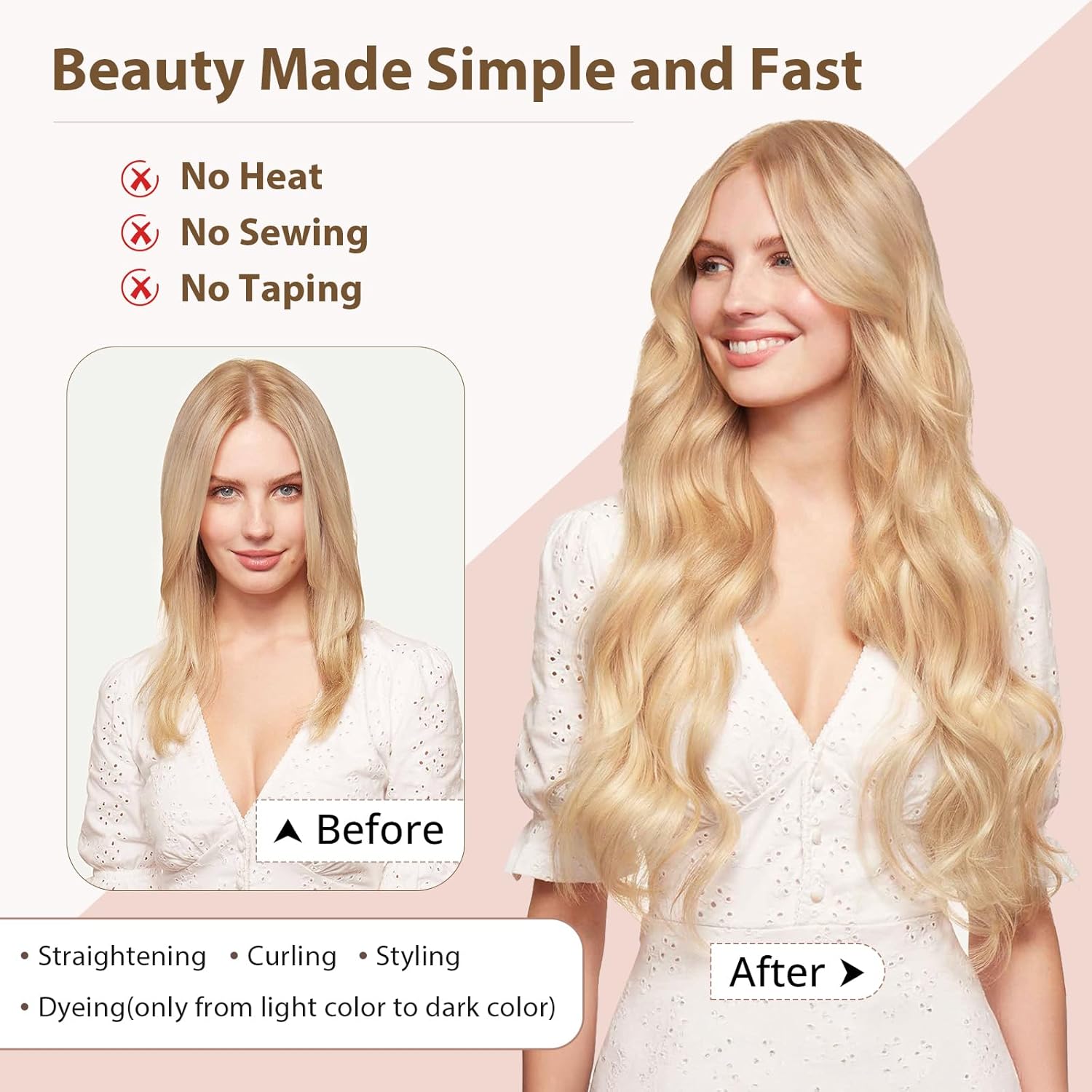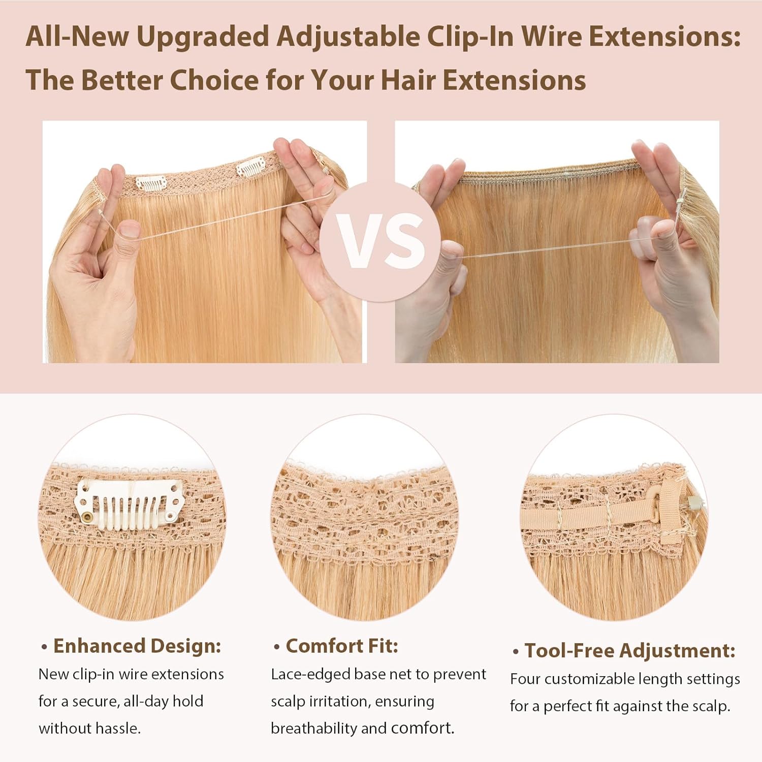 - 【Mühelose Anwendung】 Dank der problemlosen Anwendung mit elastischen Bändern machen die Haarverlängerungen mit Gummiband Klebeband oder Clips überflüssig und bieten eine schnelle Lösung, um mit einem leicht verstellbaren Draht für eine