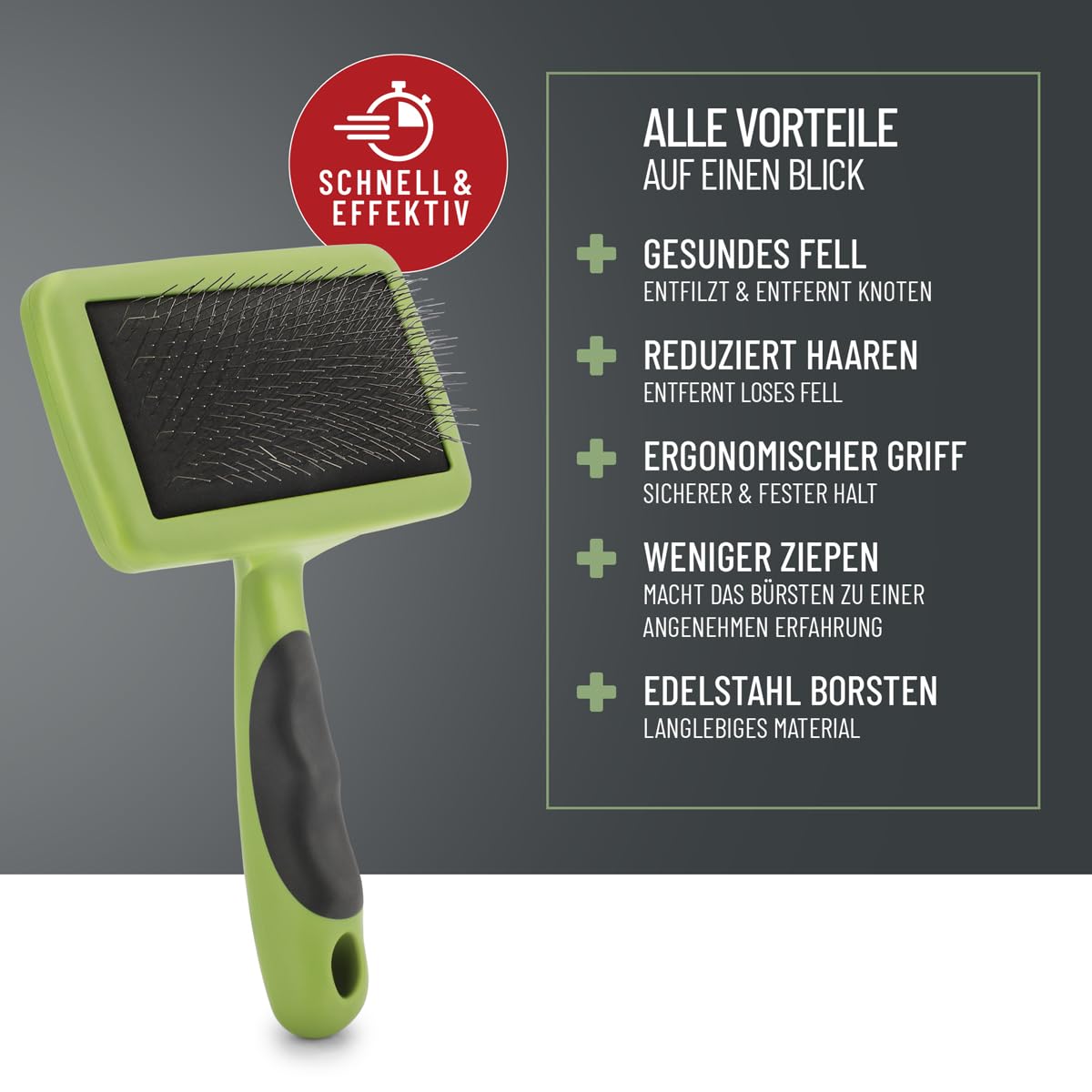- ENTWIRRT & ENTFERNT LOSES FELL - Abgerundete Edelstahlzinken gleiten sanft durchs Fell, bieten einen Massageeffekt und hinterlassen ein geschmeidiges, glänzendes Fell. Ideal für tägliche Anwendung