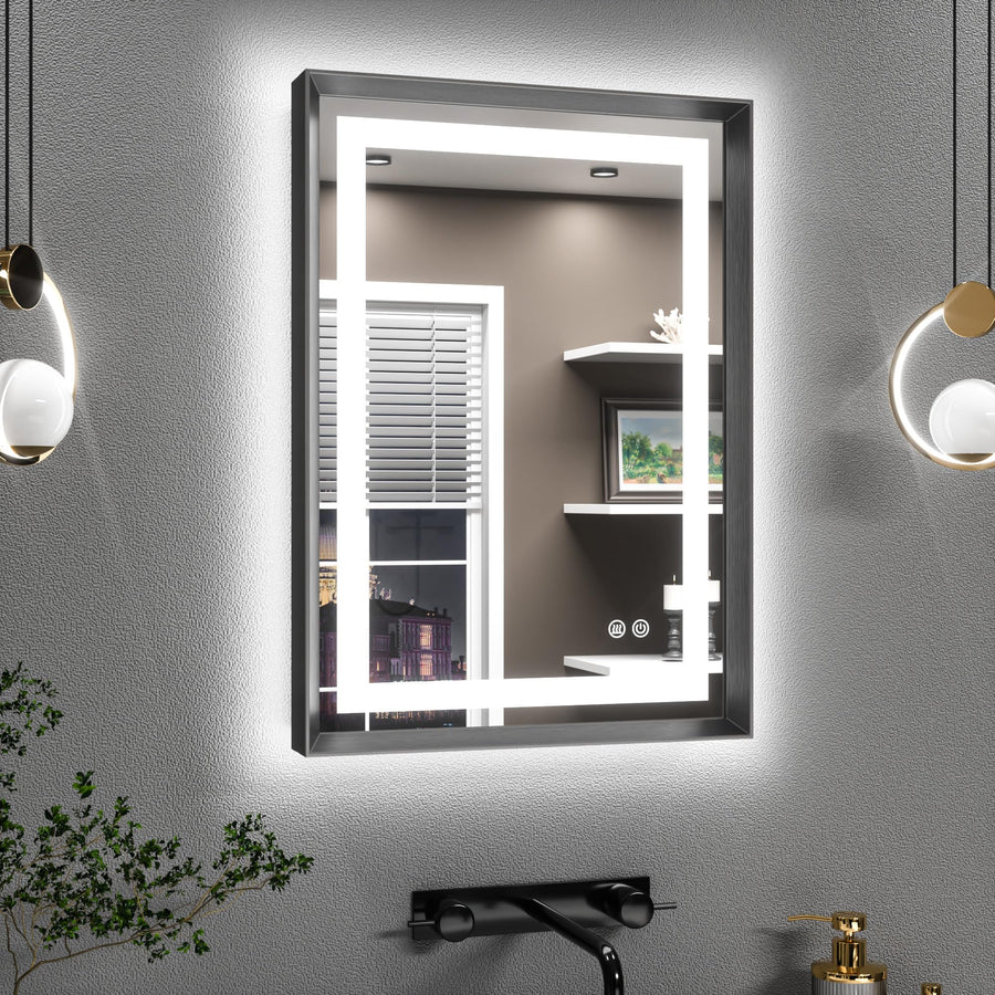 - 【Modernes Rahmen Design】Dieser edle Badezimmerspiegel Rahmen ist modern und schlank gehalten – perfekt auf Ihren Stil abgestimmt. Mit wasserdichte (IP44) und rostfreiem Aluminiumrahmen schützt er zuverlässig den Spiegel aus gehärtetem Glas.
