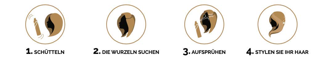 • ANWENDUNG: Vor Gebrauch gut schütteln und auf trockenem Haar anwenden. Sprühen Sie das Produkt in einem Abstand von etwa 15-20 cm auf die Wurzeln. 1-2 Minuten einwirken lassen und wie gewohnt bürsten, dann kämmen.
