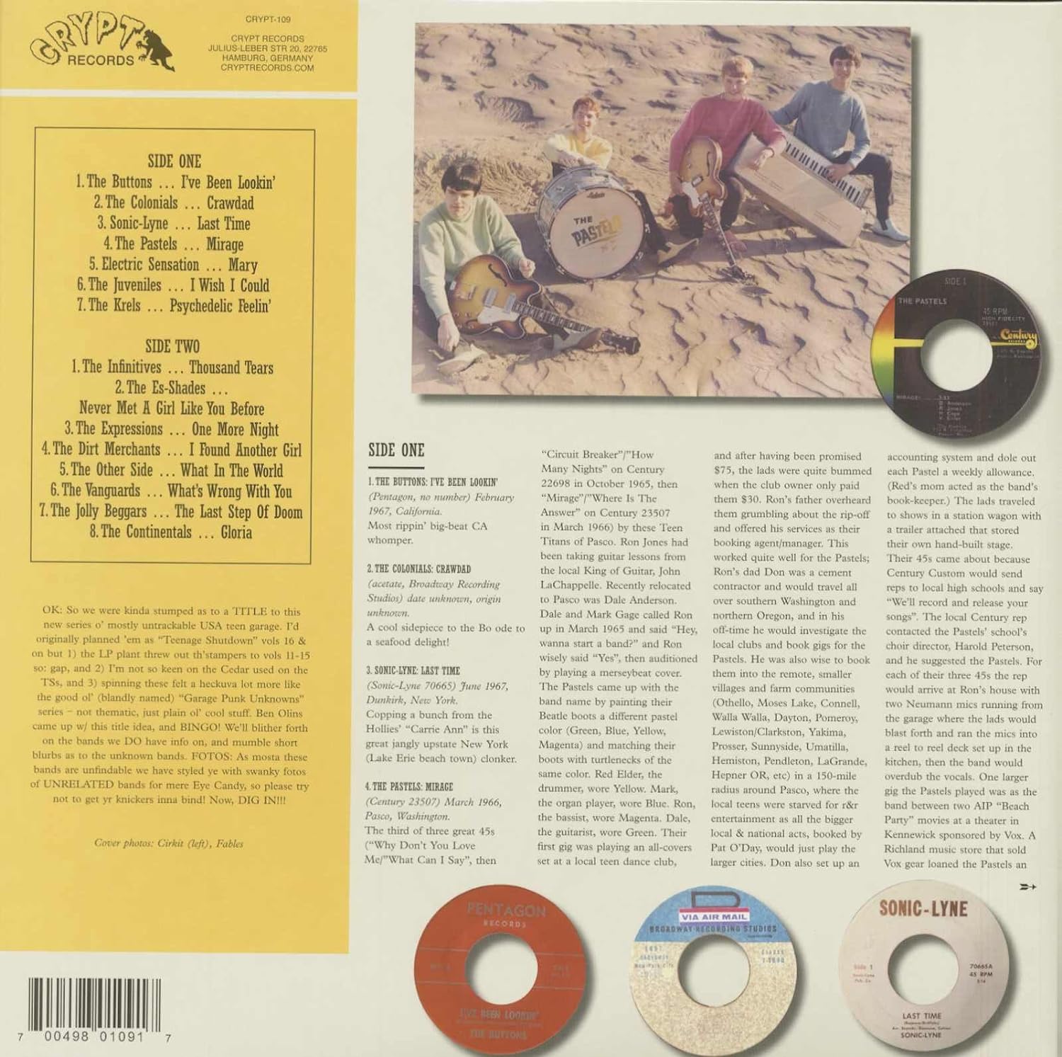 PRODUKTBESCHREIBUNGEN Limited vinyl pressing comes in gatefold jacket with deluxe liner notes, band photos, label scans, etc. In the mid ’60 s, primal rock ‘n’ roll was alive and well in garages and rehearsal spaces all over the U.S. Inspired by ‘50 s rock, the British invasion and hormones, teenagers formed bands that were rough, raw and spirited. Some of them were competent enough to record in a real studio while others kept banging away until the hippies came along and the scene became more psych-oriented. But for a few years, those sweaty hours in a garage really mattered. This collection is proof! Features 15 prime slabs of mid 60 s USA garage punk ace from the likes of Buttons, Colonials, Pastels, Electric Sensation, Dirt Merchants, Infinitives, Expressions, Vanguards and others.