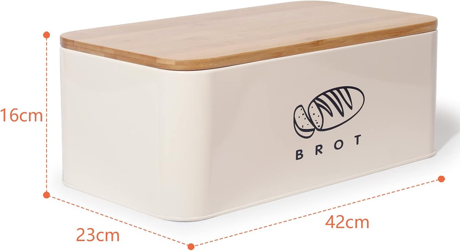 • 1.EINFACHES RETRO-DESIGN : Brotkasten hat eine einfache Form und eine angenehme Farbe.Verschiedene Funktionen, können Brot, Crepes, Kekse für eine lange Zeit speichern und trocken halten.In dieser Brotbox können auch Zwiebeln, Kartoffeln, Knoblauch