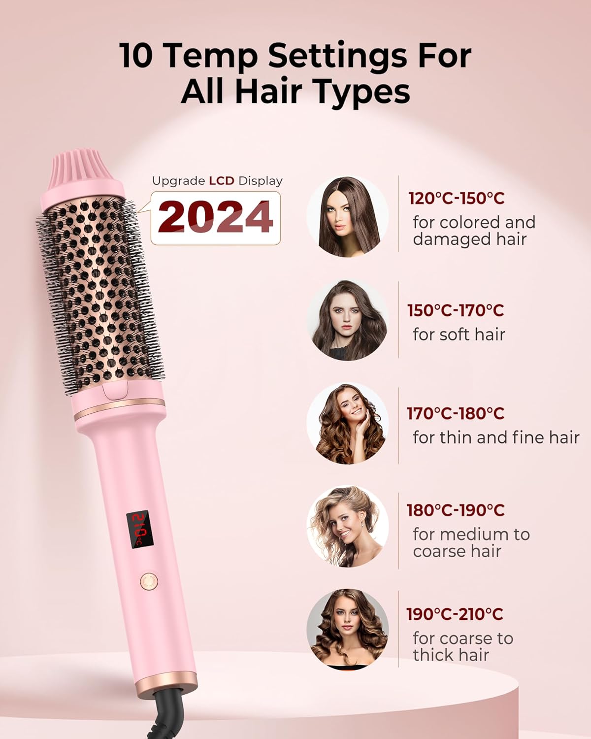 - 💕【Lockenbürste Mehrere Funktionen】Das curl brush thermobürste digitale LCD-Display verfügt über mehrere Temperatureinstellungen von 120℃ bis 210℃, um die Stylinganforderungen aller Haartypen zu erfüllen. Aus Sicherheitsgründen ist die