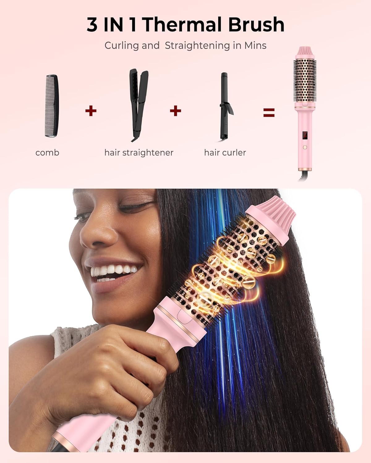 - 💕【3 IN 1 Warmluftbürste Kein Luftdesign】Die thermal brush ist eine beheizte Rundbürste zum Glätten und Stylen des Haares, jedoch nicht die Art von Heissluftbürste. kreieren Sie sensationelles Volumen mit unserem thermal brush glättbürste.