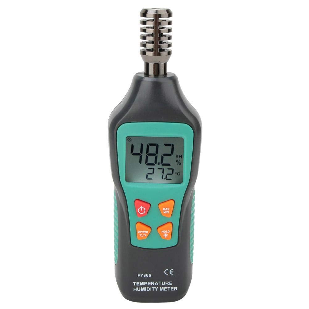 - ☛ Schnelle Reaktion mit hoher Genauigkeit – Funktionen Maximum / Minimum / Datenerhaltung, hohe Genauigkeit und schnelle Reaktion. Es wurde entwickelt, um die Funktionen von Feuchtigkeitsmesser, Temperatur, Nasstemperatur und Taupunkt zu kombinieren